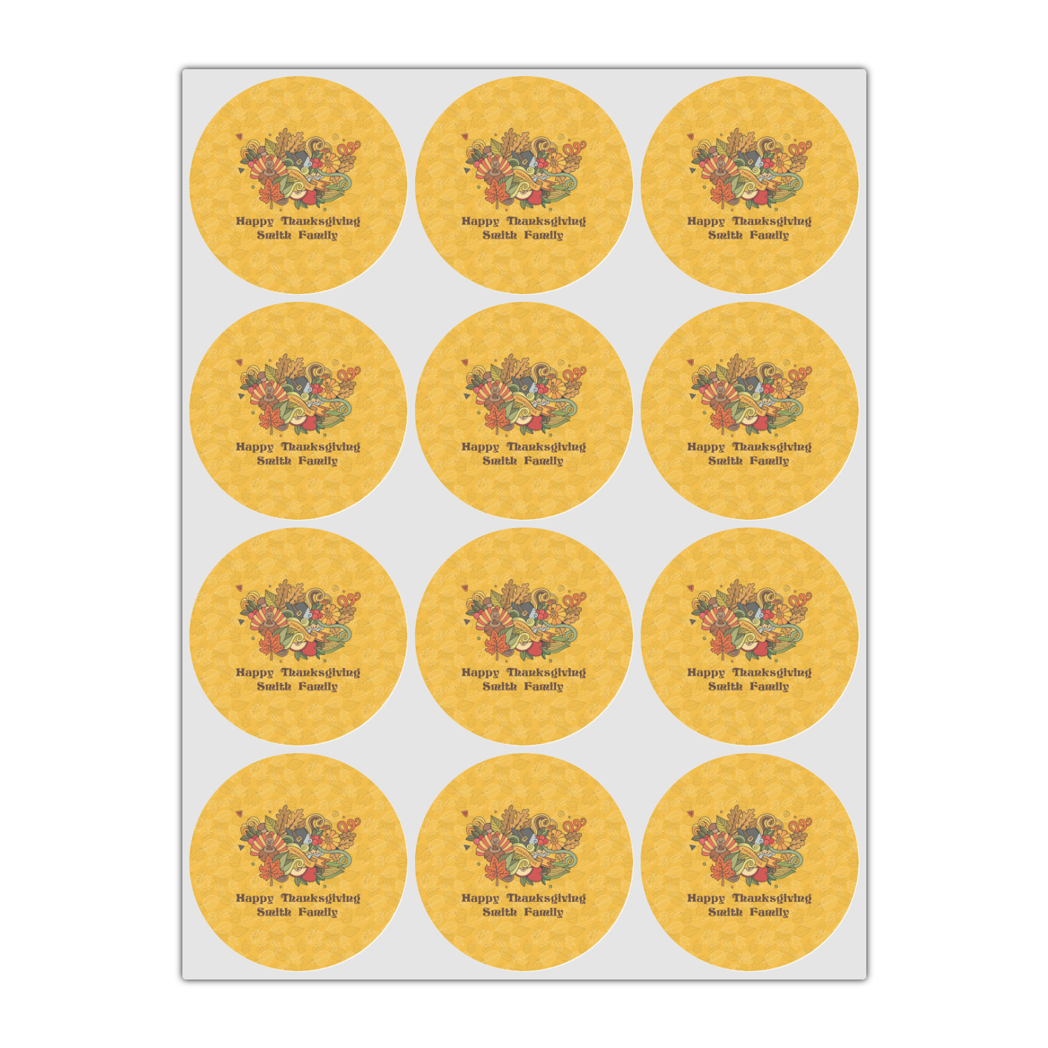 Happy Thanksgiving is a retro classic design with all the fall and thanksgiving elements. The background is two tones of leaves on a gold background and it features a hand drawn montage / collage of thanksgiving elements. We chose a retro font and personalized it with "Happy Thanksgiving" and "Smith Family" in a fall / thanksgiving dark brown from our fall/thanksgiving color palette.