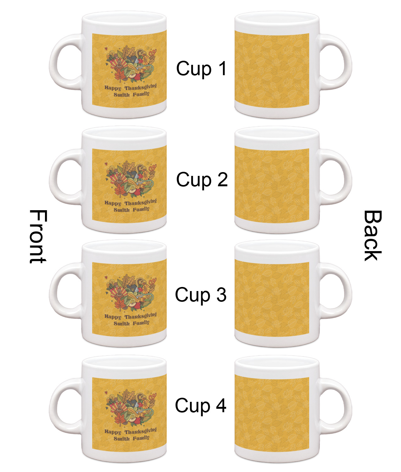 Each of our espresso mugs is a ceramic material sure to keep your drink warm. Personalize one cup for yourself, or order a set of 4! Its the perfect little gift for any coffee lover! We carry two sizes for you to personalize - 3 oz. (approx. 3.25" x 2.325" x 2.625") or 6 oz. (approx. 4" x 2.9" x 2.9"). Our 3 oz. mug is perfect for that single shot espresso while our 6 oz. mug can be your next favorite cappuccino cup holding two shots of espresso!