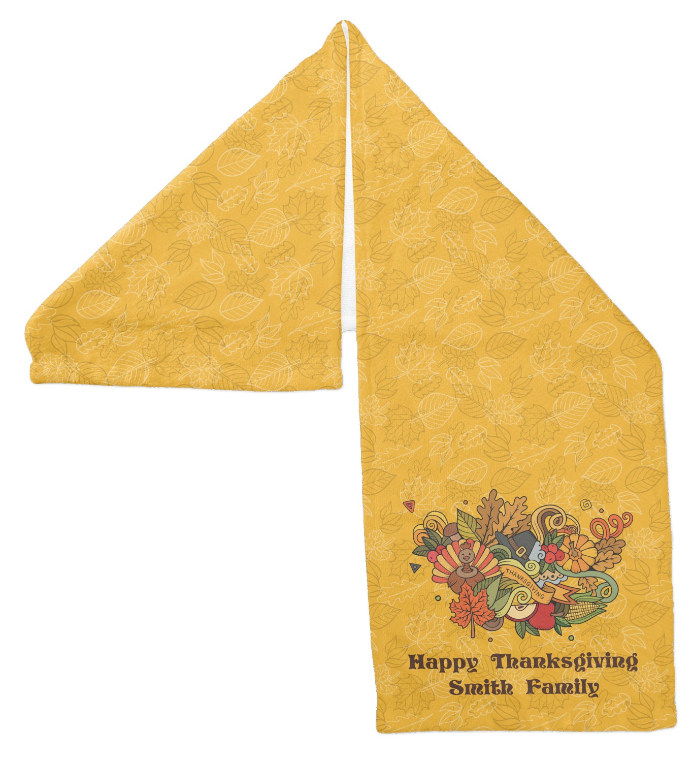 Happy Thanksgiving is a retro classic design with all the fall and thanksgiving elements. The background is two tones of leaves on a gold background and it features a hand drawn montage / collage of thanksgiving elements. We chose a retro font and personalized it with "Happy Thanksgiving" and "Smith Family" in a fall / thanksgiving dark brown from our fall/thanksgiving color palette.