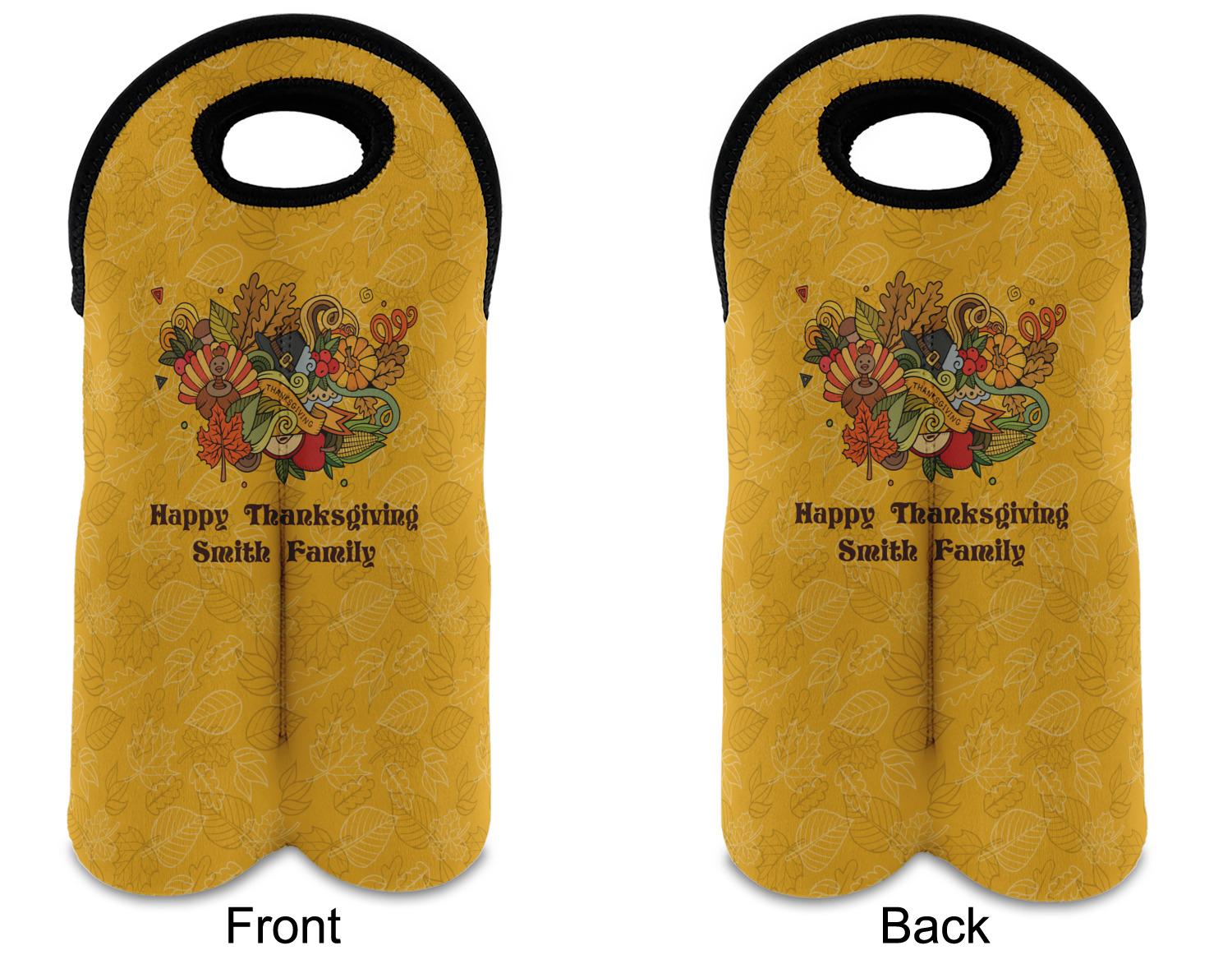 These tote bags are insulated to keep the bottles cold and have a stitched separation down the middle and double handles to keep the two bottles safe and secure during travels.