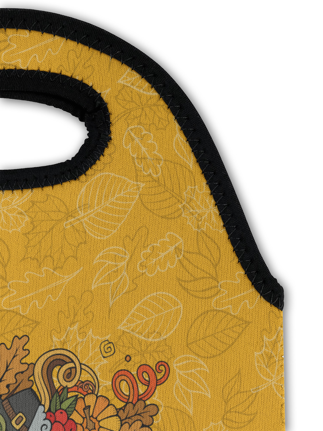 Happy Thanksgiving is a retro classic design with all the fall and thanksgiving elements. The background is two tones of leaves on a gold background and it features a hand drawn montage / collage of thanksgiving elements. We chose a retro font and personalized it with "Happy Thanksgiving" and "Smith Family" in a fall / thanksgiving dark brown from our fall/thanksgiving color palette.