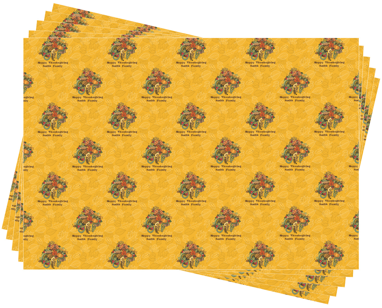 Happy Thanksgiving is a retro classic design with all the fall and thanksgiving elements. The background is two tones of leaves on a gold background and it features a hand drawn montage / collage of thanksgiving elements. We chose a retro font and personalized it with "Happy Thanksgiving" and "Smith Family" in a fall / thanksgiving dark brown from our fall/thanksgiving color palette.