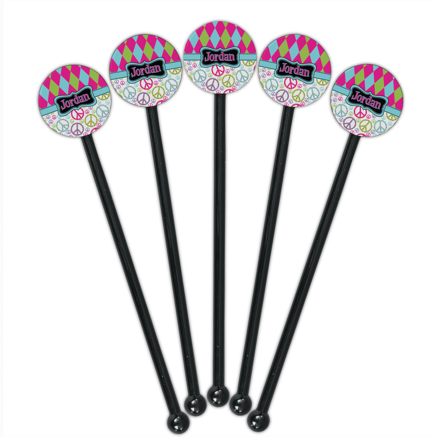 Shape + Symbol Designs for 5.5" Round Plastic Stir Sticks - Black - Single-Sided