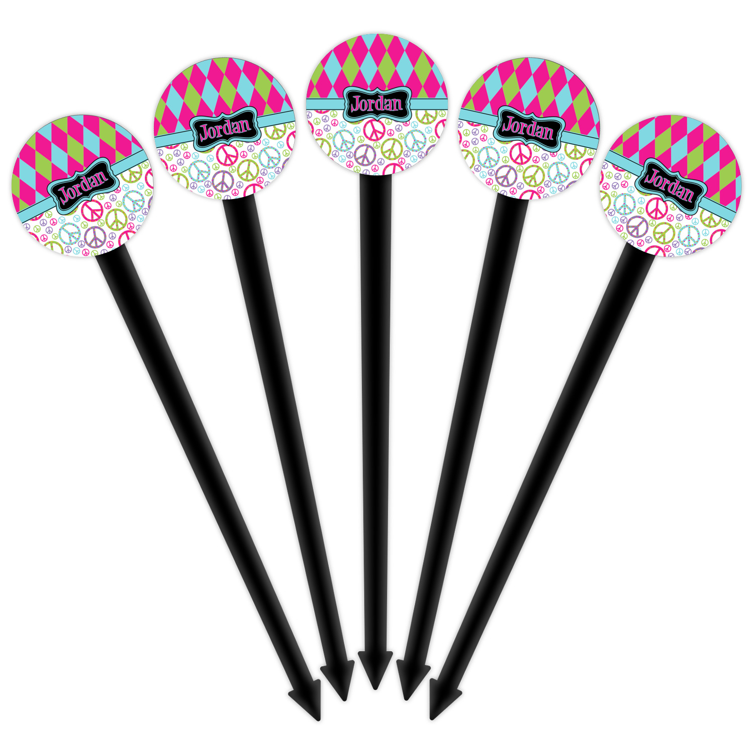 Shape + Symbol Designs for 6" Round Plastic Food Picks - Black - Double-Sided
