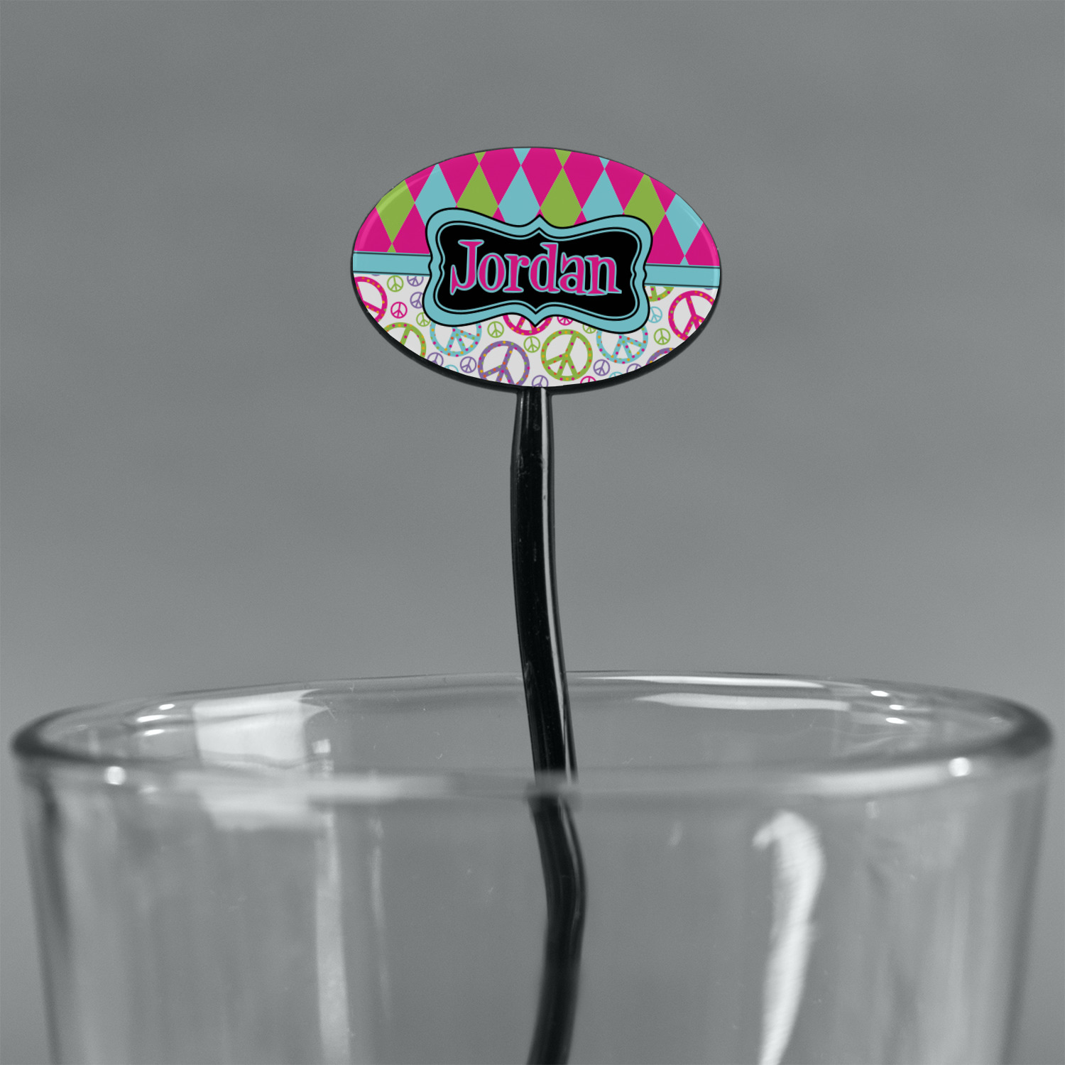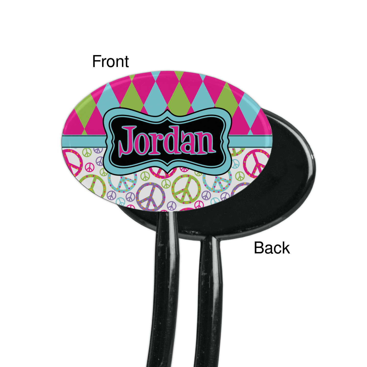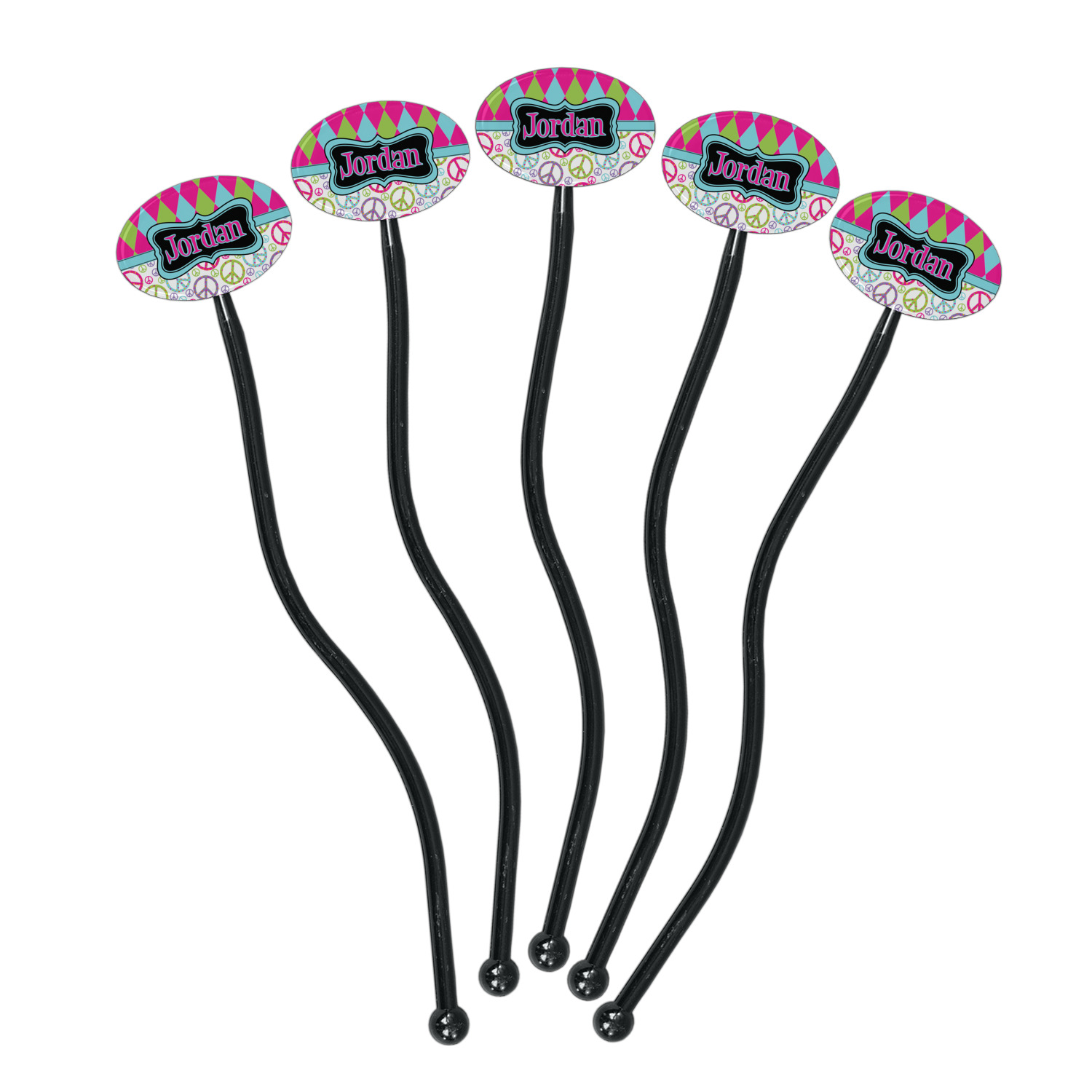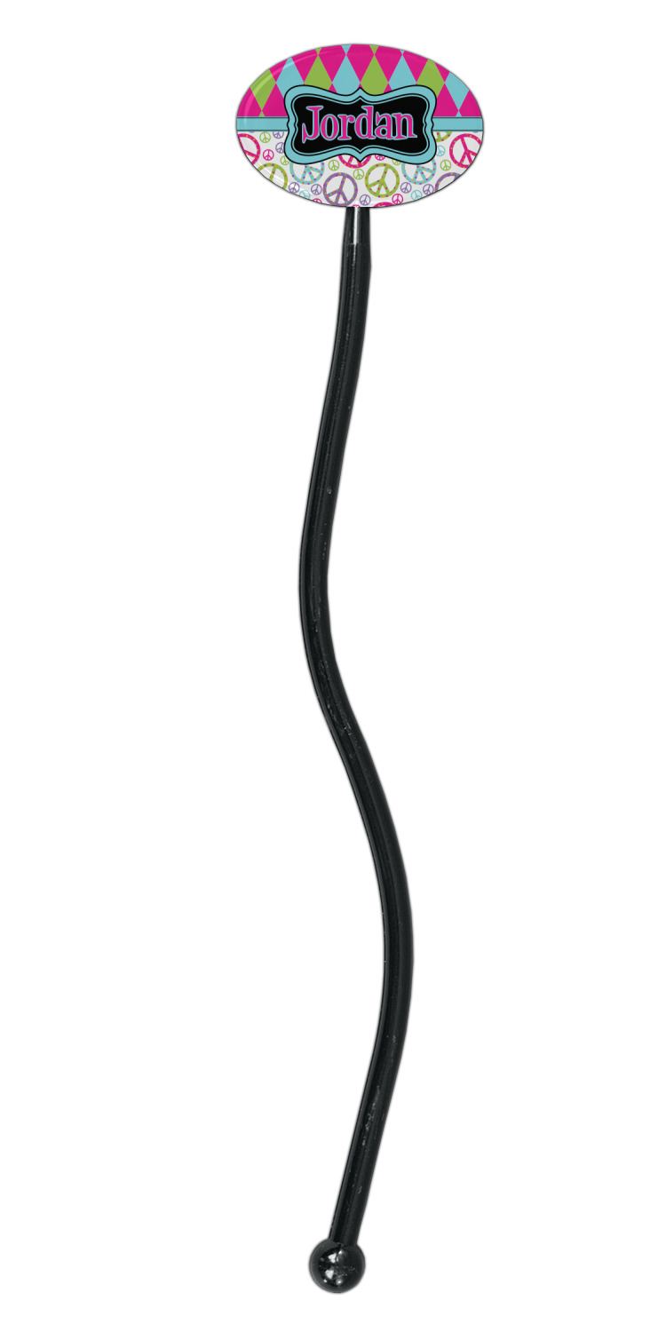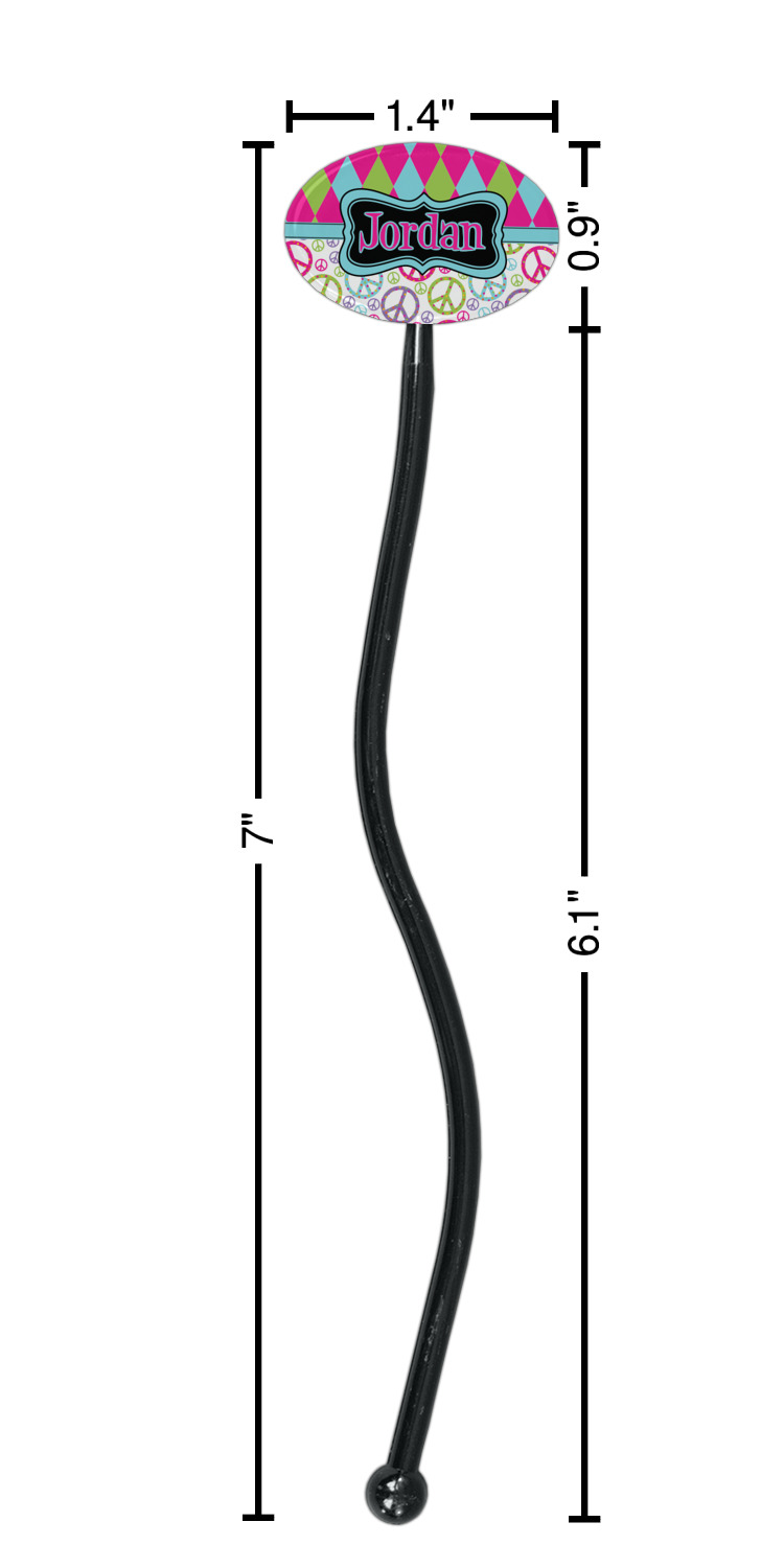 Shape + Symbol Designs for 7" Oval Plastic Stir Sticks - Black - Single-Sided