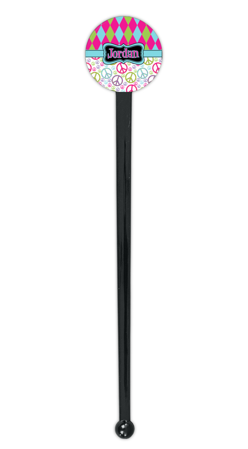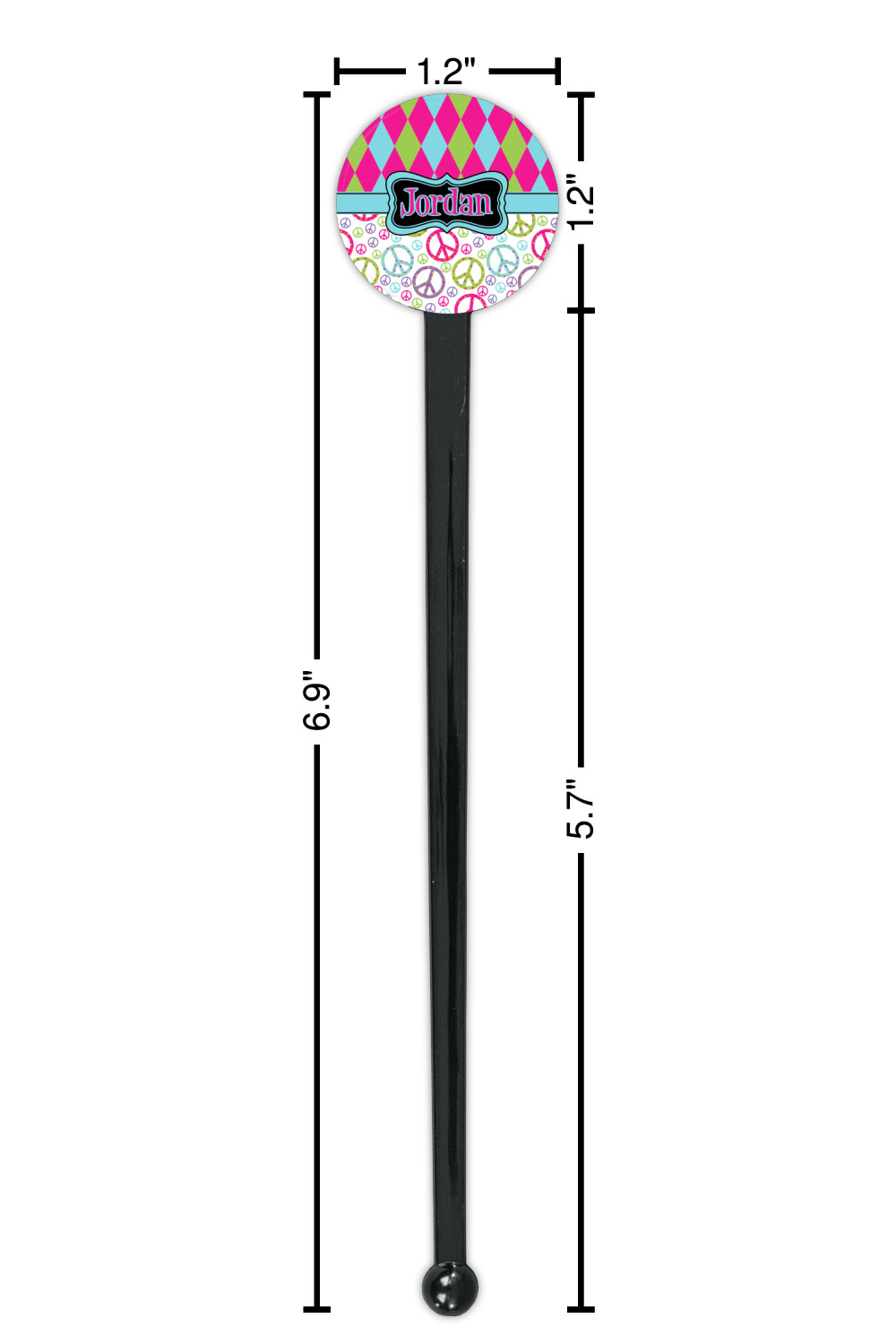 Shape + Symbol Designs for 7" Round Plastic Stir Sticks - Black - Double-Sided