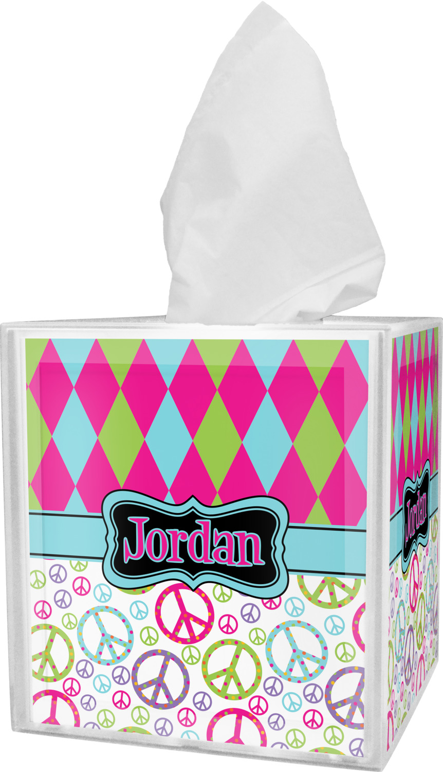 These tissue holders are built from durable acrylic and display your unique personalization on fine-quality vinyl inserts placed within the four sides and top. The box features two pieces, allowing you to easily switch out tissue boxes. On the sides, you'll find ridges that ensure the top and base fit securely in place. The bottom of these tissue box holders has four, rubber, non-slip pads to prevent the box from scuffing any surface you decide to display it on. Each box can fit a standard 5-by-5-inch box of tissues.