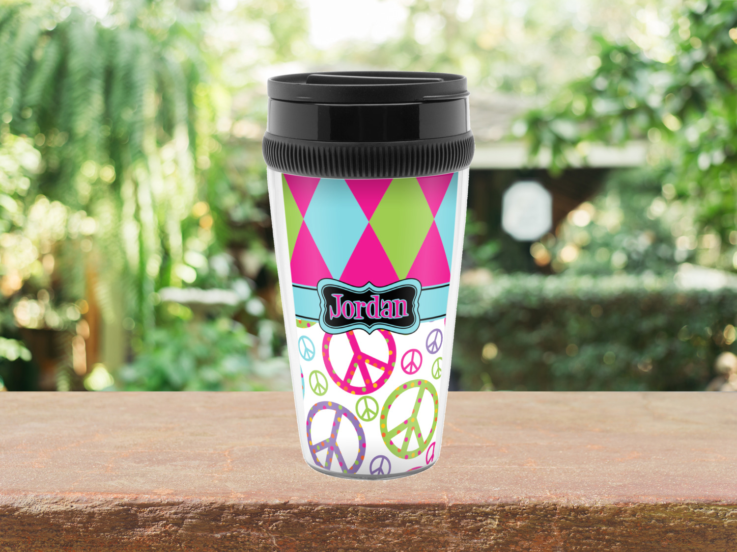Keep your drink secure while on your daily commute with one of our personalized travel mugs! These travel mugs will add a splash of color and creativity to your kitchen counter-top, car cup holder, office desk, or wherever you choose to place them! With these custom mugs, you'll never have to settle for a boring, run-of-the-mill travel mug.