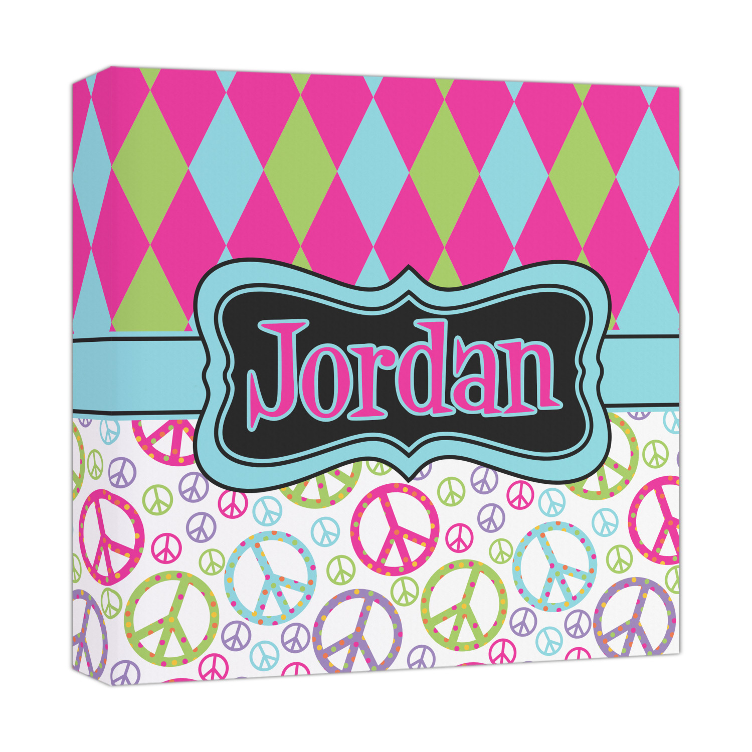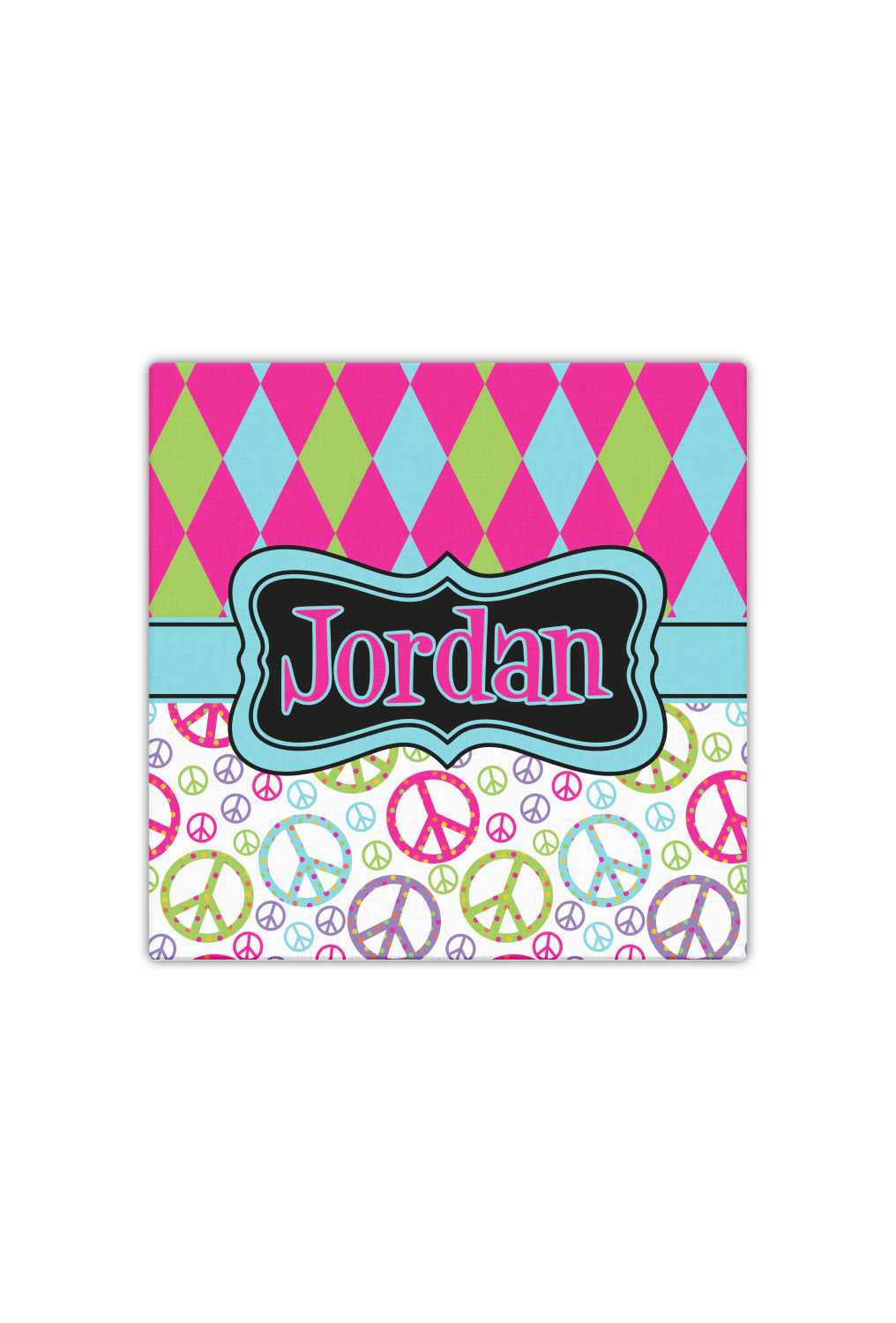 The Harlequin and Peace Signs Design is sure a nice throw back to the 70s. The retro design features harlequin print on the top half in hot pink, lime and light teal. The bottom half is colorful peace signs in the same color scheme on a black background. The larger peace signs have fun polka dots and are surrounded by smaller solid colored peace signs.