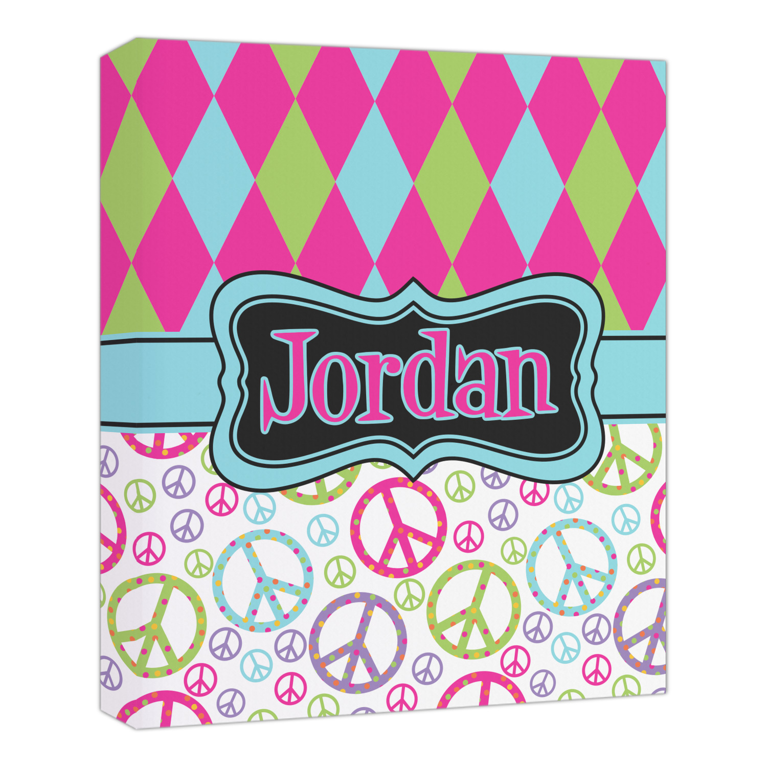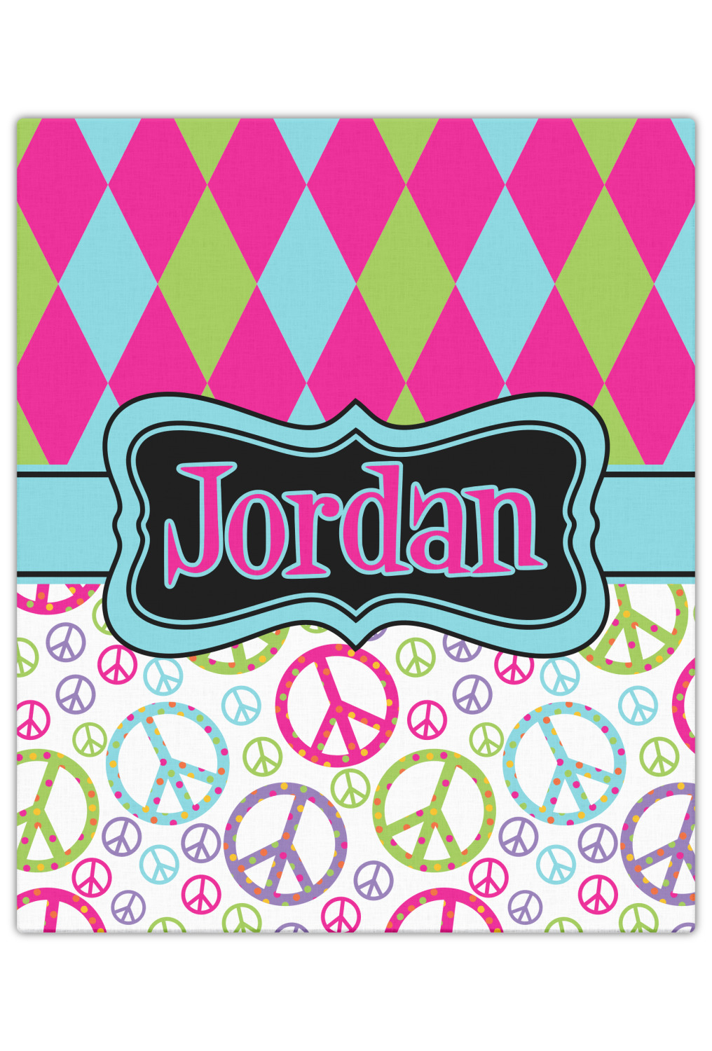 The Harlequin and Peace Signs Design is sure a nice throw back to the 70s. The retro design features harlequin print on the top half in hot pink, lime and light teal. The bottom half is colorful peace signs in the same color scheme on a black background. The larger peace signs have fun polka dots and are surrounded by smaller solid colored peace signs.