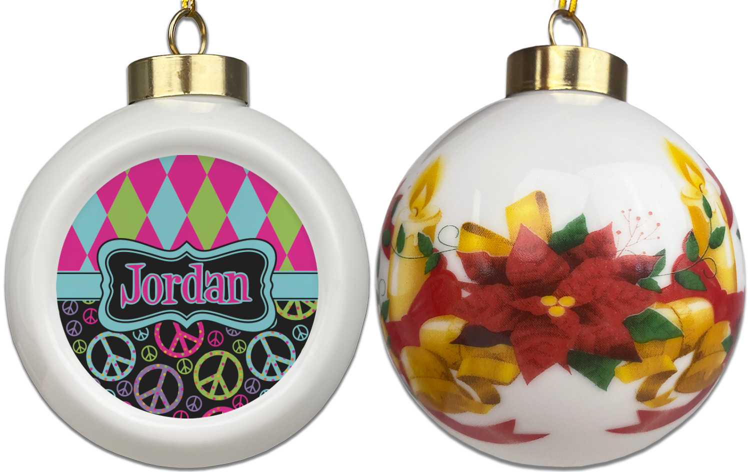 Our Christmas ornaments are a unique ceramic ball shape with a twist as it has a flat face to display your custom design! Select from one of our two design types - Christmas Tree or Poinsettia Garland - to adorn the curved back of your personal design. Each ornament measures 3H x 2.5W x 2D accompanied with a gold string accent for finishing touches to hang on your beautiful Christmas tree!