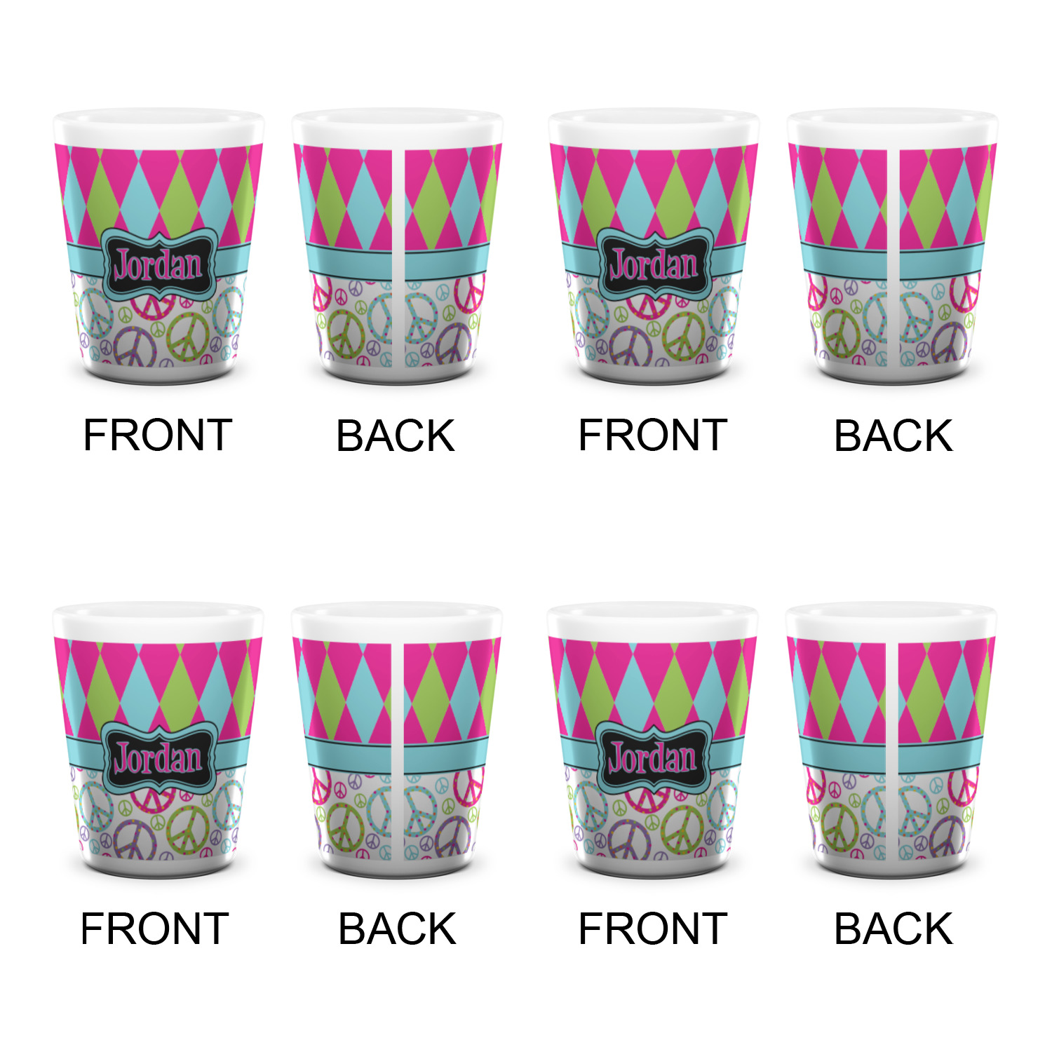 Made from ceramic these shot glasses are printed in full color with the design of your choice. These are a standard 1.5oz size and stand 2.25" tall. Available in a full white ceramic or a two-tone with a black color inside the shot glass. Buy a single or a set of 4, all of which can be designed separately to get you just what you want and need.