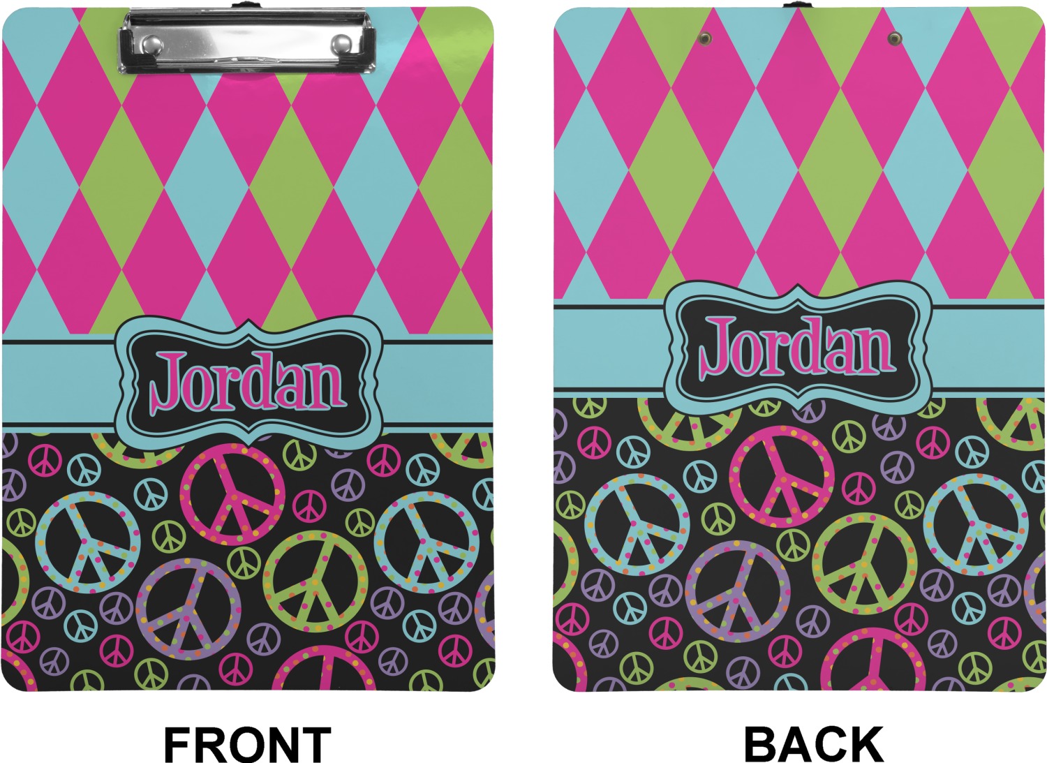 These custom clipboards are made from a strong hardboard and are coated with a glossy finish that accentuates the colors of your design. Alongside a retractable hook at its top, these decorative clipboards also feature sturdy clips to secure several sheets of paper. We sell these clipboards in two separate sizes. Our letter size measures at 12.5" L x 9" W, while our legal clipboard is approximately 15.5" L x 9" W. On both models, your personalization is printed on both sides of this clipboard and can be customized individually.