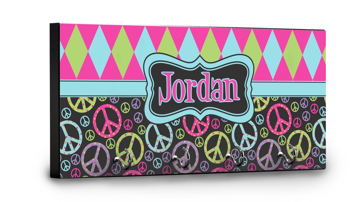 This 11" x 5" key hanger is made of sturdy wood and has four metal hooks lining the bottom. This is the perfect size for a family with several drivers. Not only can you hang keys on it though, but pet leashes and other small items. The board is black on the sides and back and is printed with the design of your choice on the front.