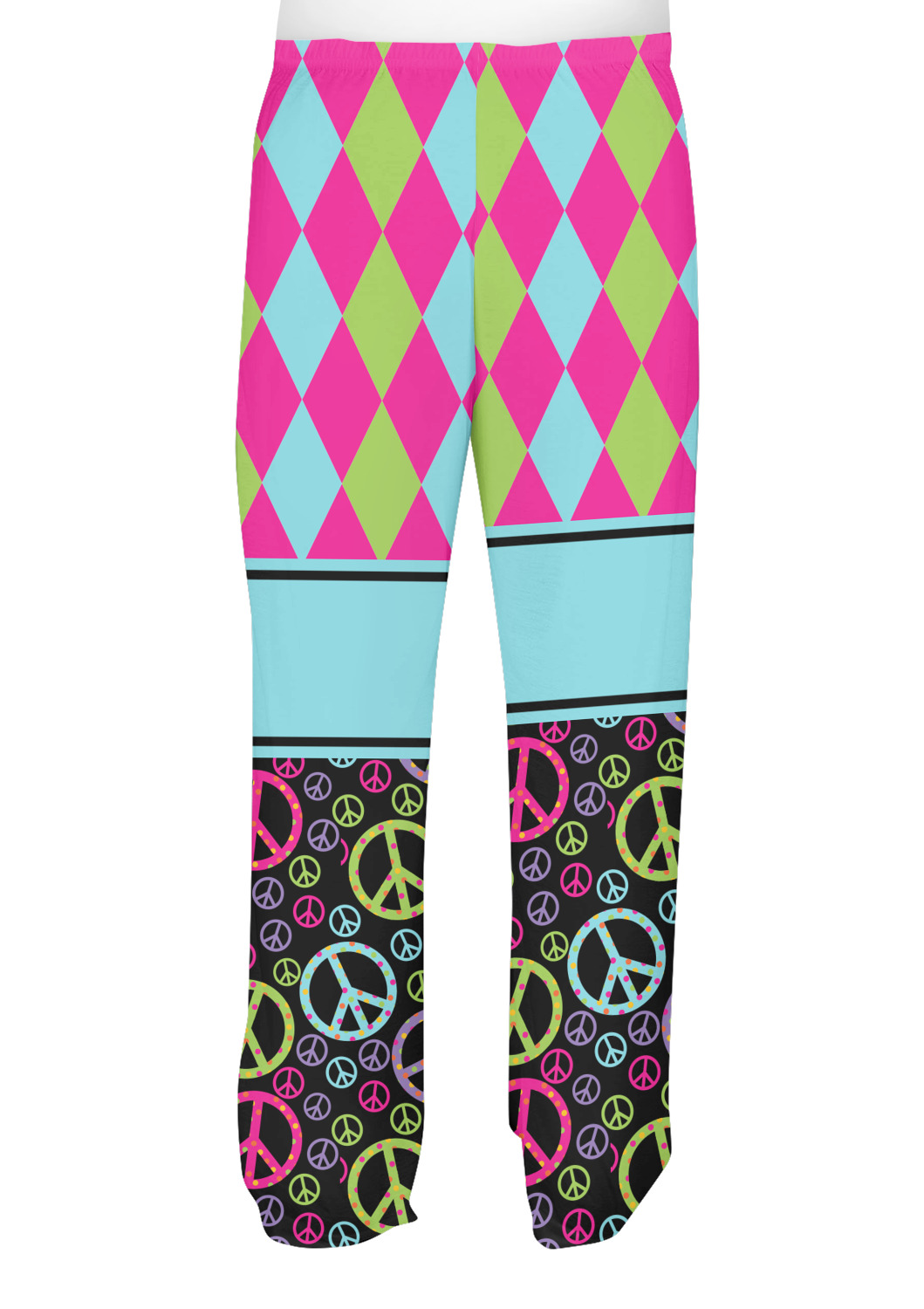 The Harlequin and Peace Signs Design is sure a nice throw back to the 70s. The retro design features harlequin print on the top half in hot pink, lime and light teal. The bottom half is colorful peace signs in the same color scheme on a black background. The larger peace signs have fun polka dots and are surrounded by smaller solid colored peace signs.