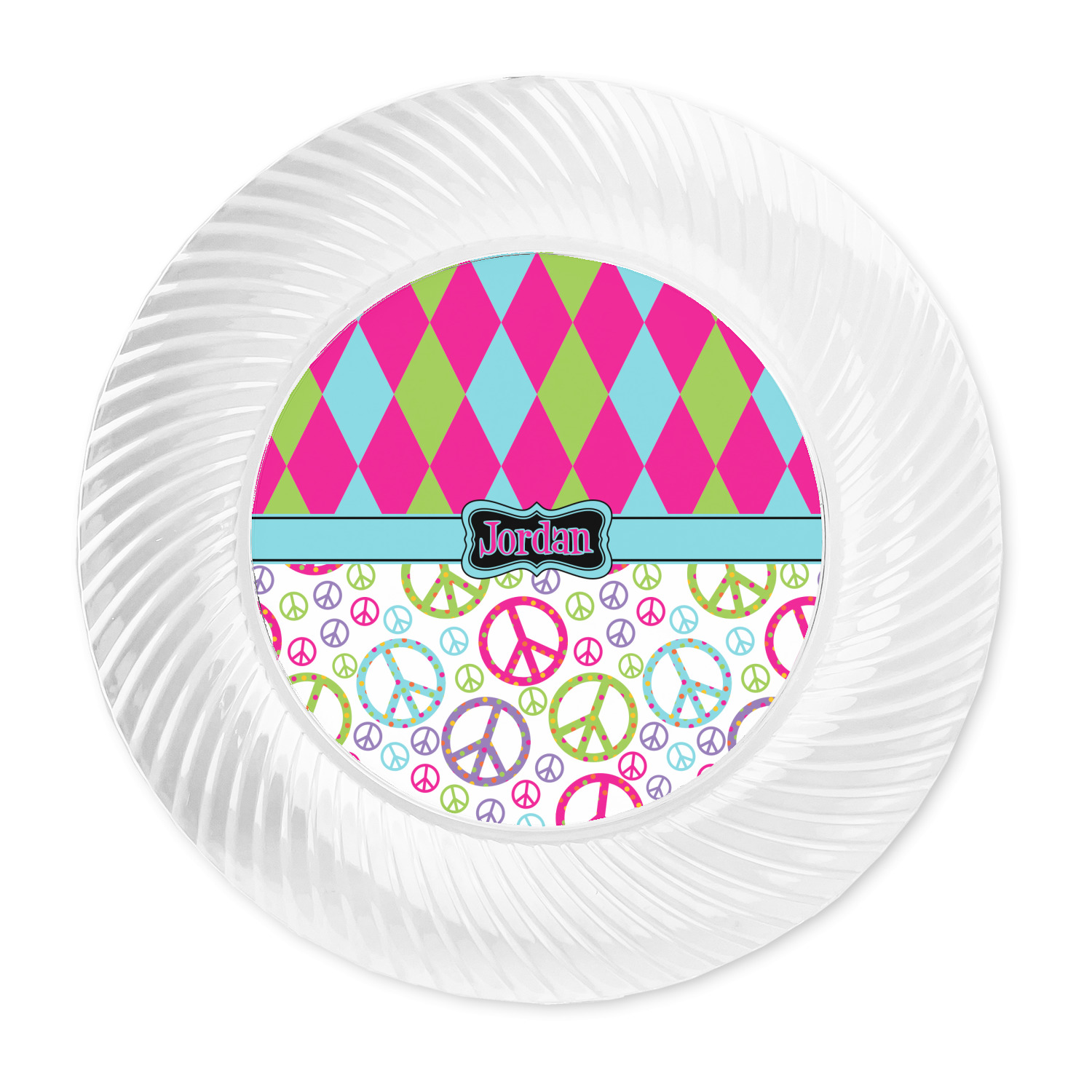 Made from a beautiful clear plastic plate as a base, your design is printed to the underside of the plate. The outside of these disposable plates has a classic swirl texture to it for a high quality look and feel.