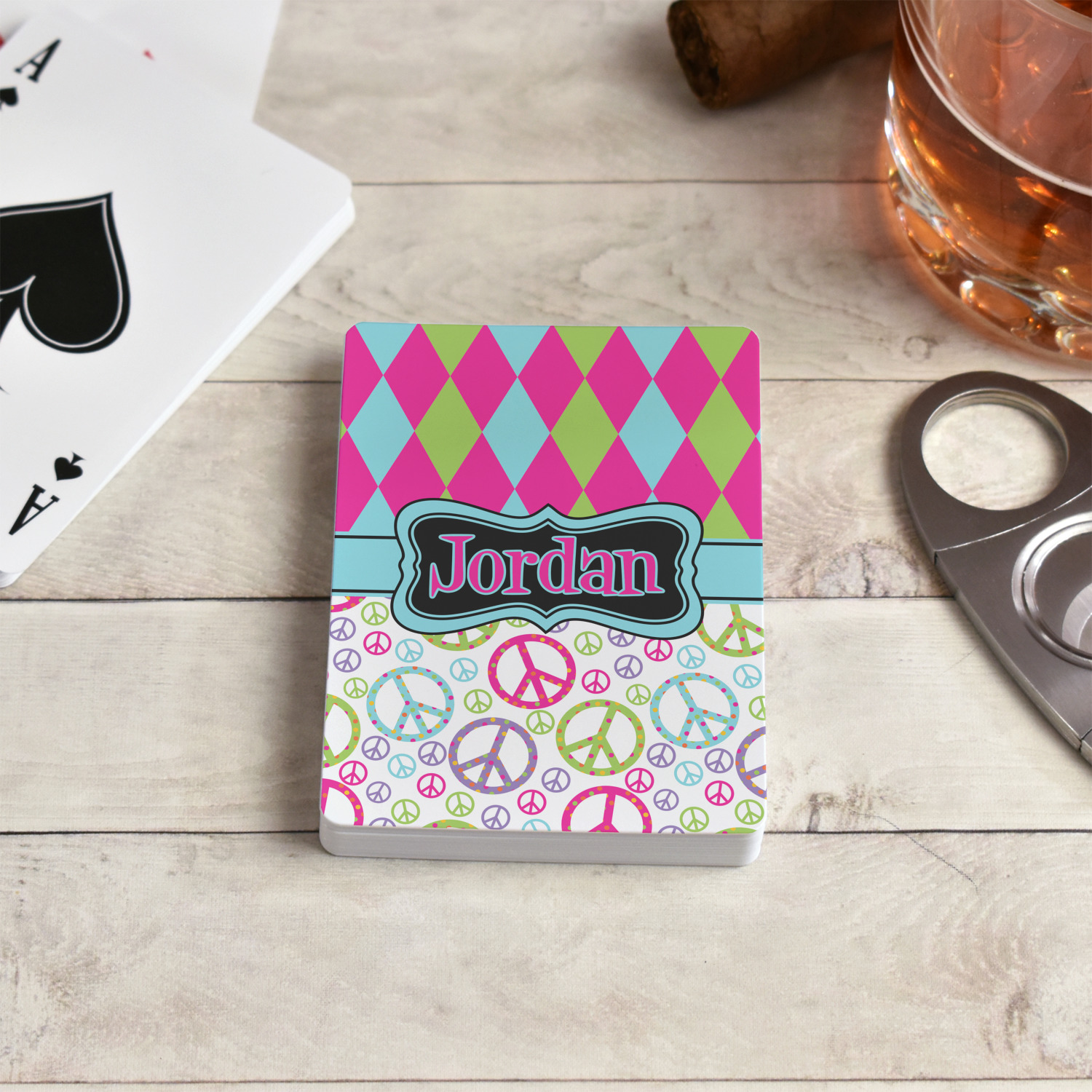 Our playing cards are perfect for family game nights or poker nights. A deck of customized playing cards ups the level of fun & entertainment to your game or poker nights. Imagine playing cards customized to match the theme of your game room, or game night, or that special event, or occasion with gambling tables!