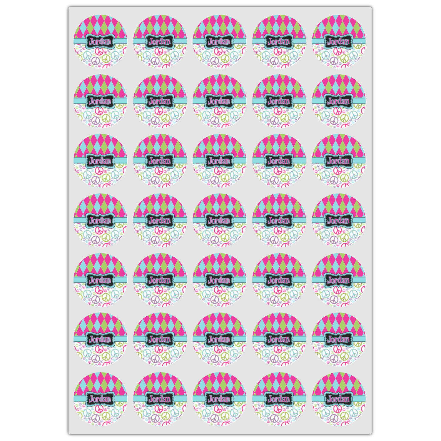 The Harlequin and Peace Signs Design is sure a nice throw back to the 70s. The retro design features harlequin print on the top half in hot pink, lime and light teal. The bottom half is colorful peace signs in the same color scheme on a black background. The larger peace signs have fun polka dots and are surrounded by smaller solid colored peace signs.