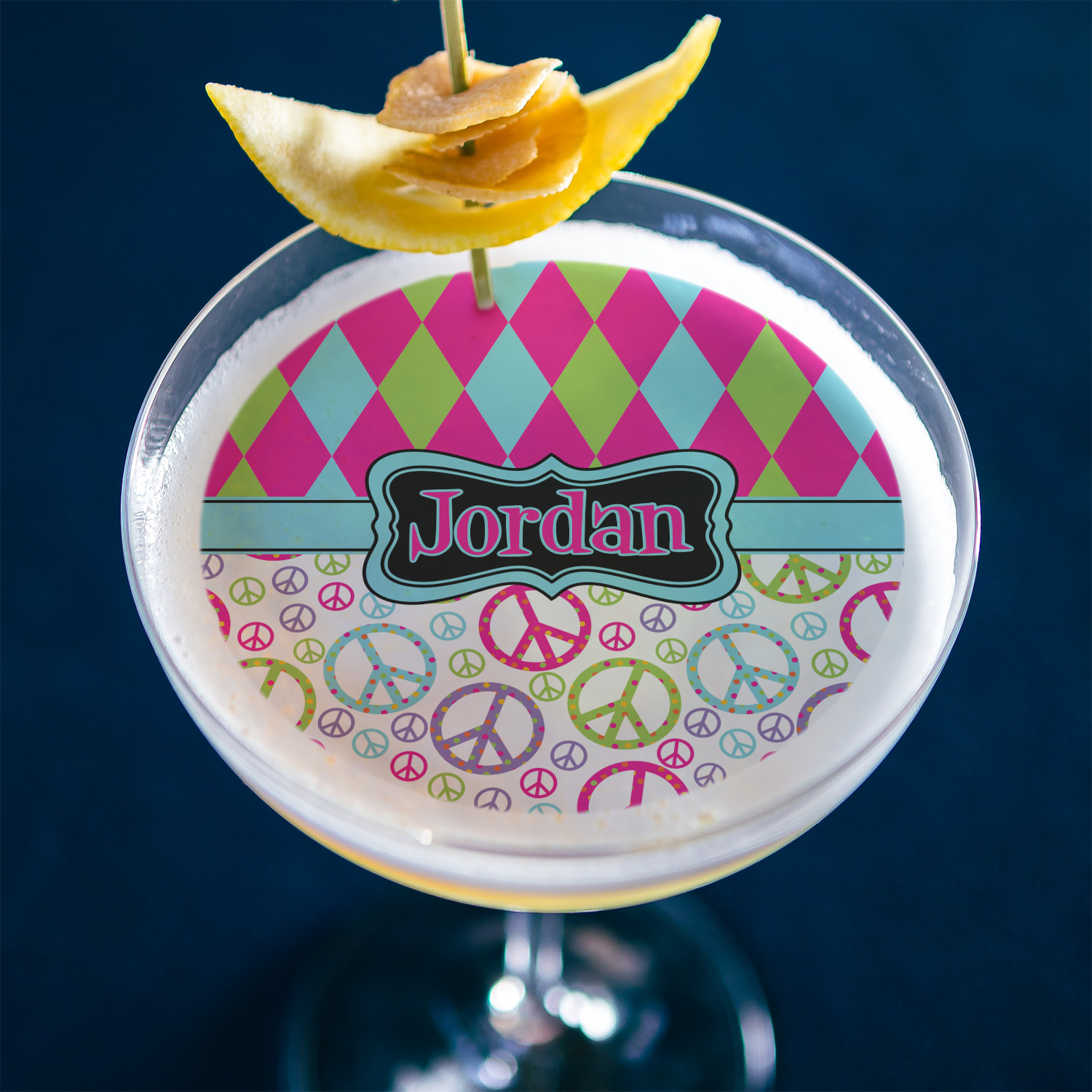 Our drink toppers are printed in full color with FDA approved edible inks. The cocktail toppers are printed on premium wafer thin icing sheets (not wafer paper) and then cut into circles.