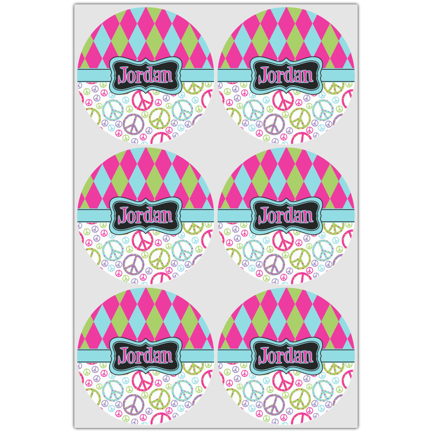 The Harlequin and Peace Signs Design is sure a nice throw back to the 70s. The retro design features harlequin print on the top half in hot pink, lime and light teal. The bottom half is colorful peace signs in the same color scheme on a black background. The larger peace signs have fun polka dots and are surrounded by smaller solid colored peace signs.