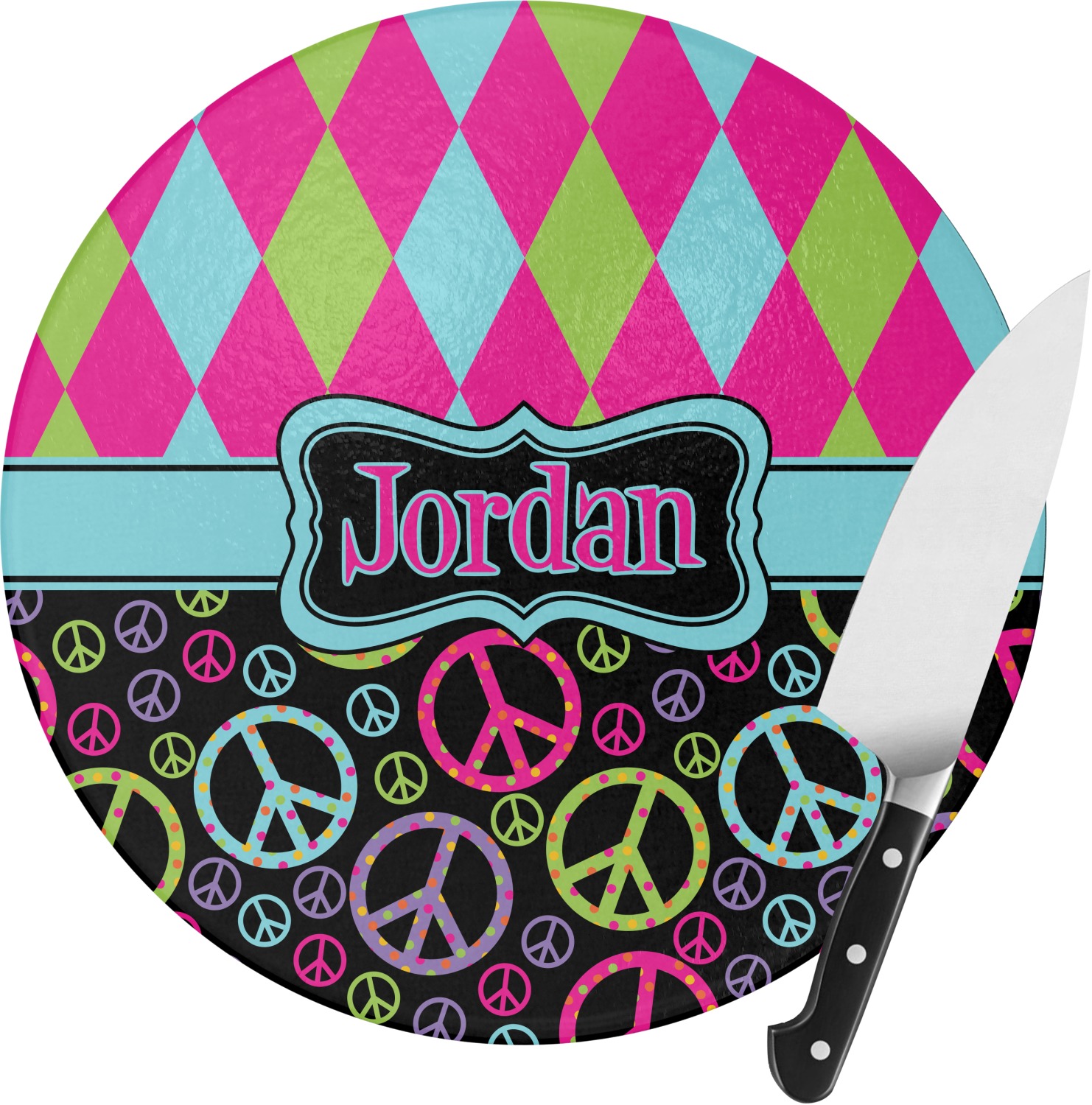 Prep your meals with passion when you use our personalized round cutting boards. The personalization options we offer really make them one of a kind and they are available in delightful colors and designs that might just keep you smiling instead off crying when you're cutting onions!!