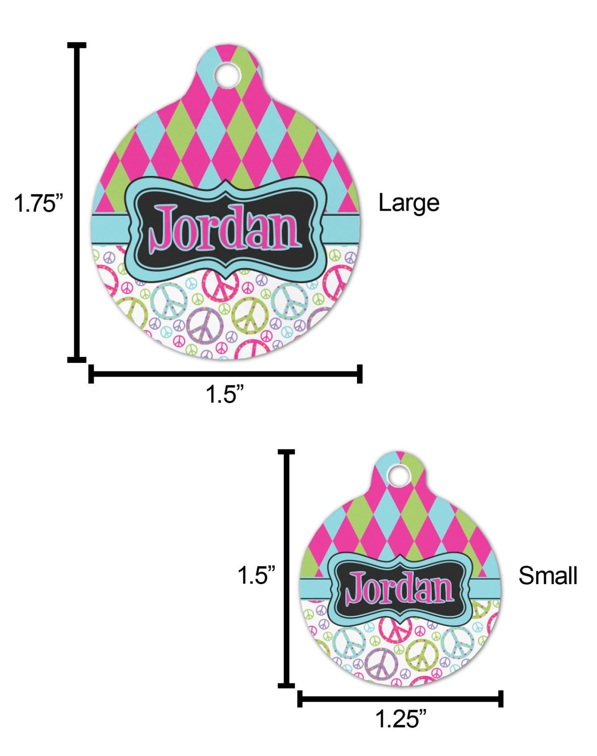 Go ahead; skip the monotony of plain pet ID tags with your very own, customized & personalized, round pet tag! This pet ID tag, fitting for both cats and dogs, will catch the eye of any onlooker (humans, canines, and felines, alike!) and accentuate your pet's individual personality.
