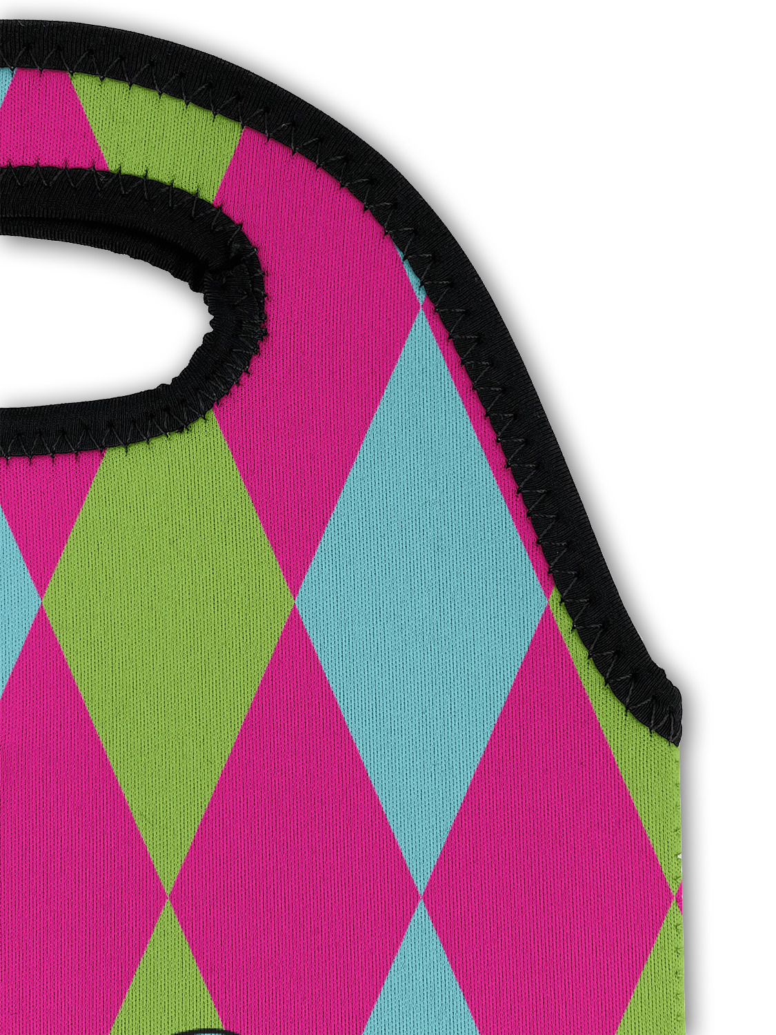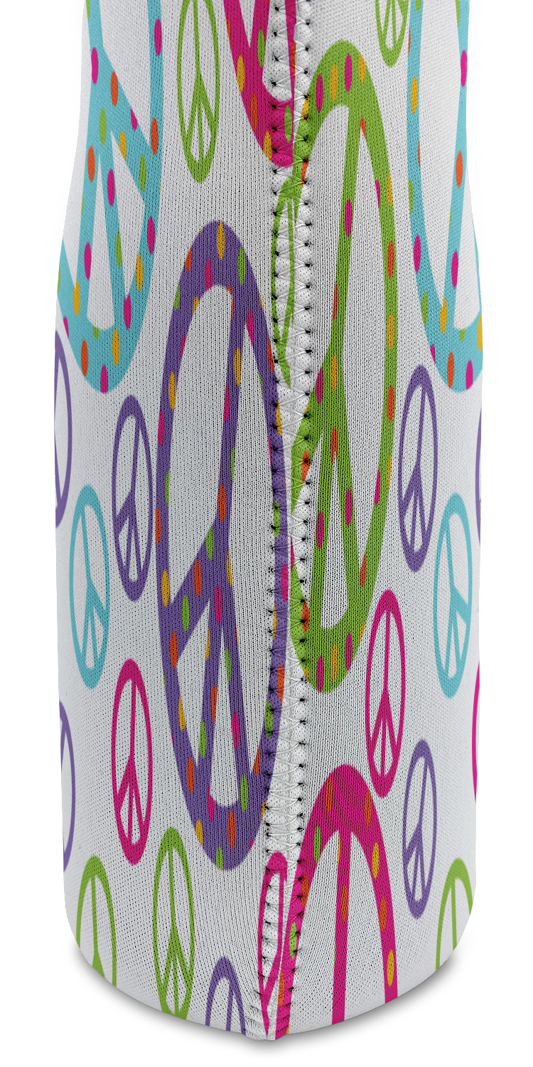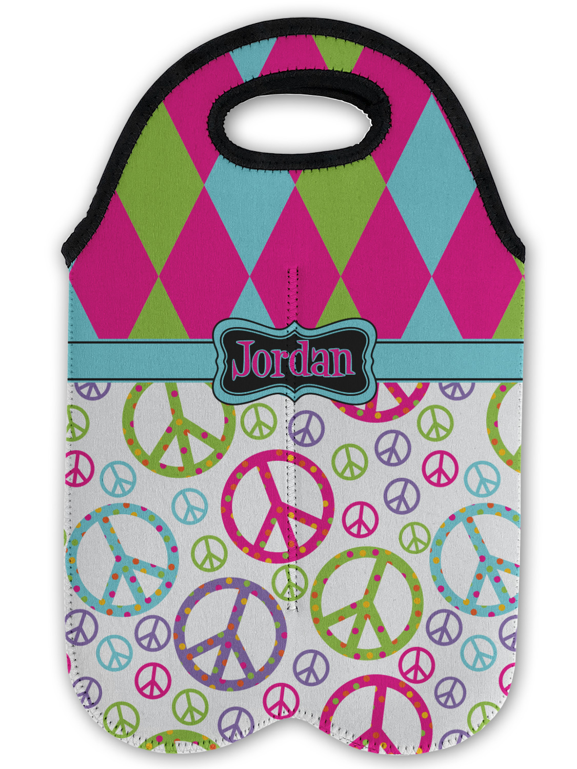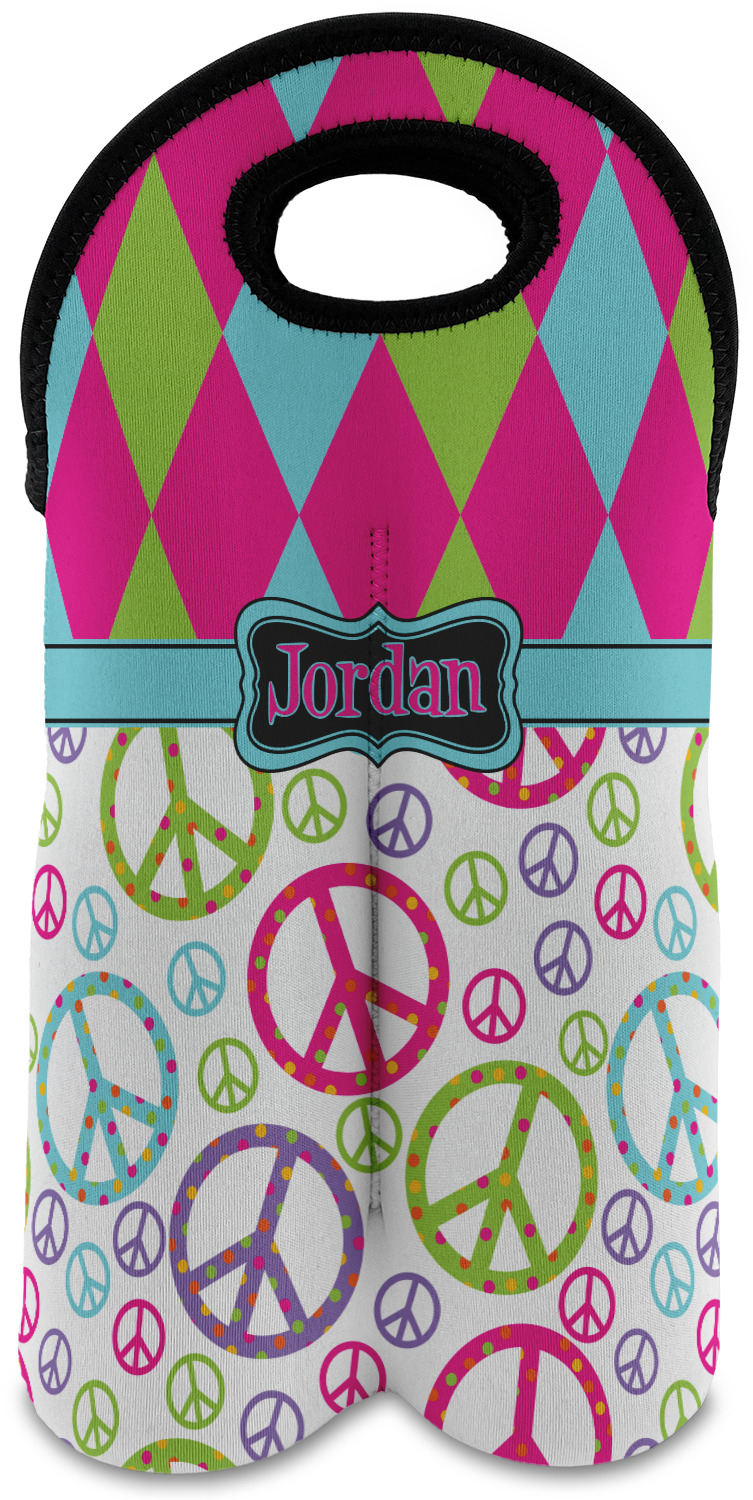The Harlequin and Peace Signs Design is sure a nice throw back to the 70s. The retro design features harlequin print on the top half in hot pink, lime and light teal. The bottom half is colorful peace signs in the same color scheme on a black background. The larger peace signs have fun polka dots and are surrounded by smaller solid colored peace signs.