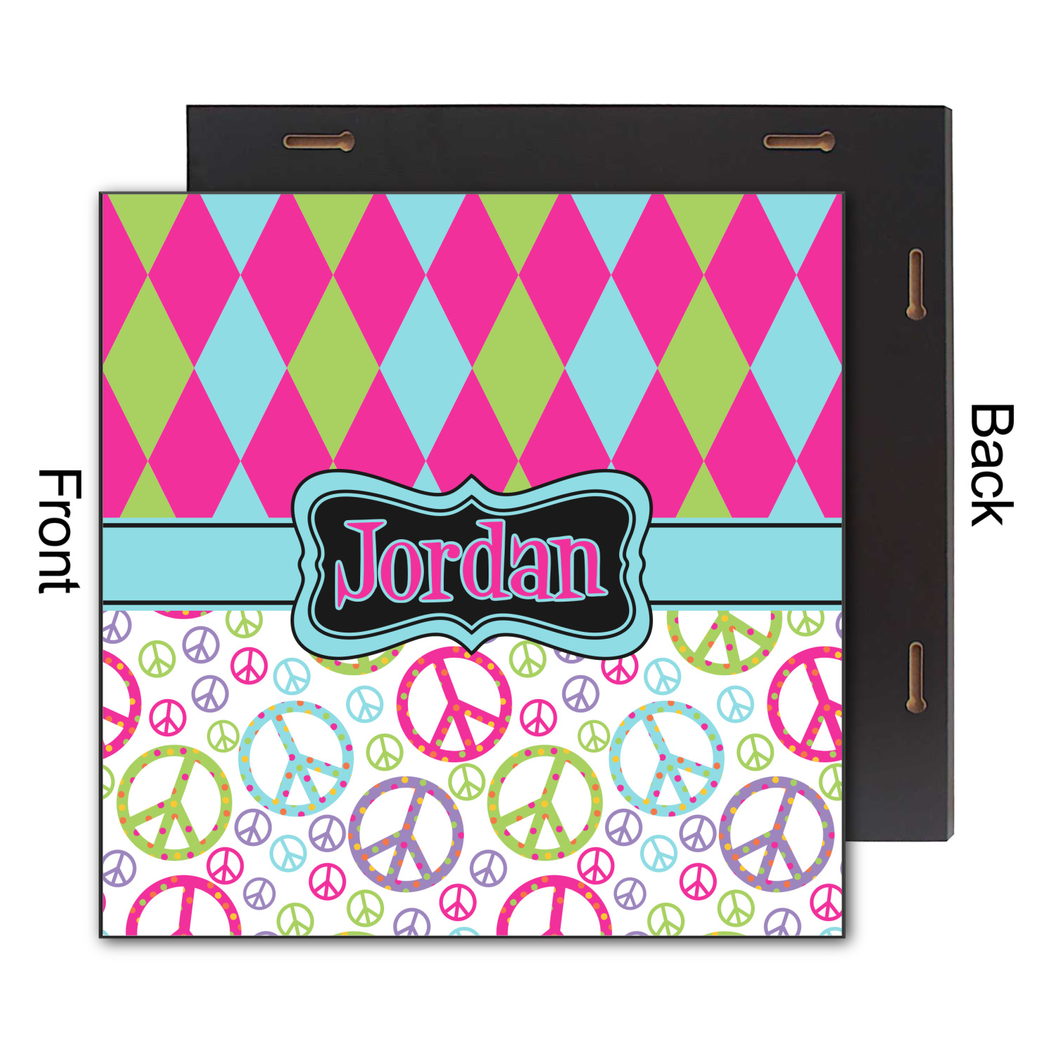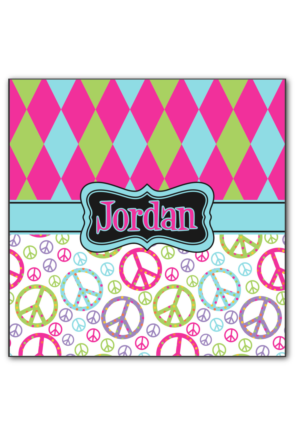 The Harlequin and Peace Signs Design is sure a nice throw back to the 70s. The retro design features harlequin print on the top half in hot pink, lime and light teal. The bottom half is colorful peace signs in the same color scheme on a black background. The larger peace signs have fun polka dots and are surrounded by smaller solid colored peace signs.