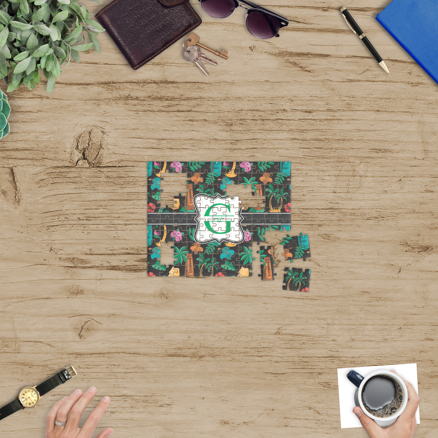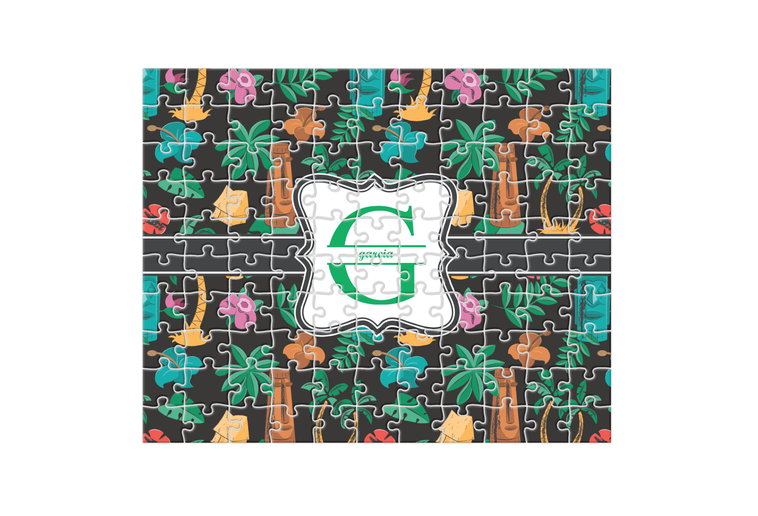 Depending on the look you are trying to achieve, you can add; a thematic pattern or background, with a photo in a frame and text or personalization to your puzzle. Basically if you can imagine it, you can design it!