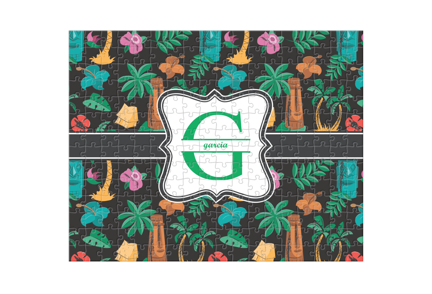Depending on the look you are trying to achieve, you can add; a thematic pattern or background, with a photo in a frame and text or personalization to your puzzle. Basically if you can imagine it, you can design it!
