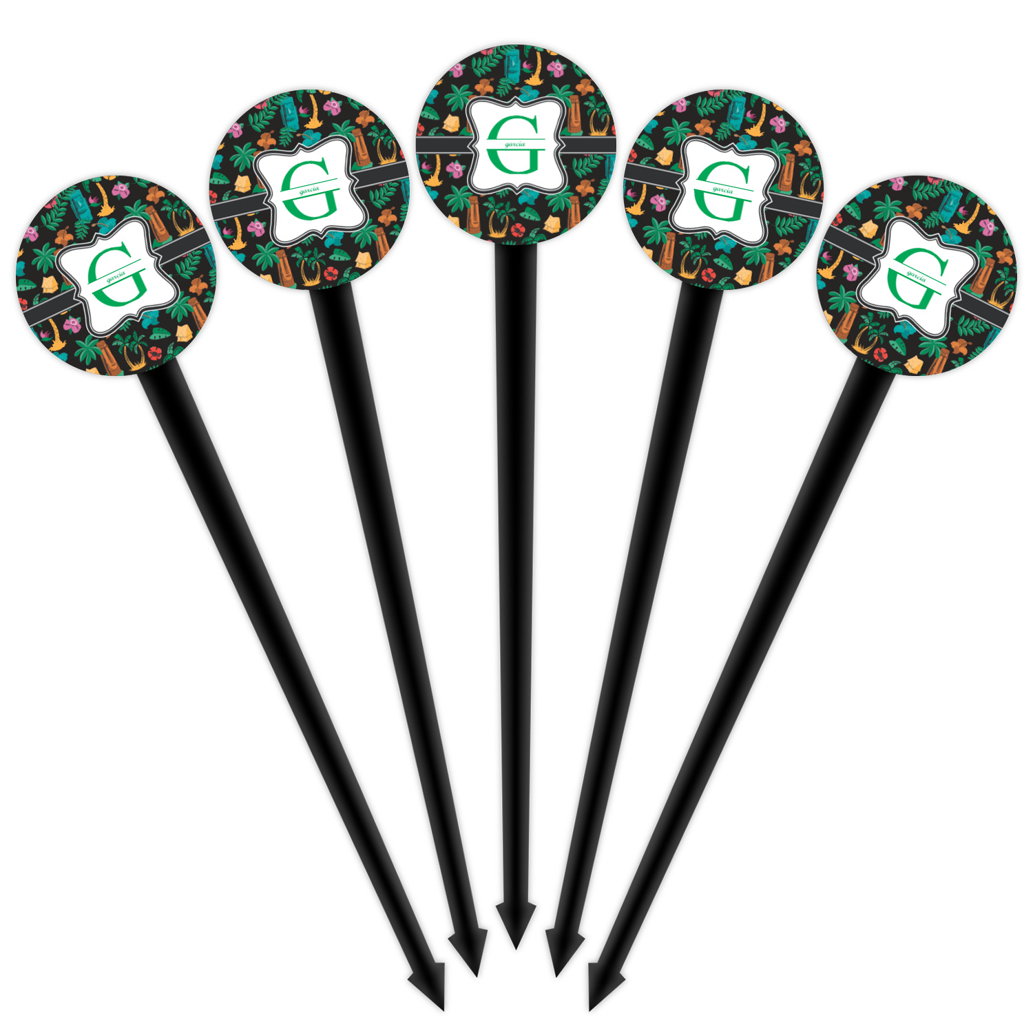 Our plastic cocktail picks have a round disc on top that is printed in full color with your event theme, colors, your logo, your photo, names, initials, monograms etc.