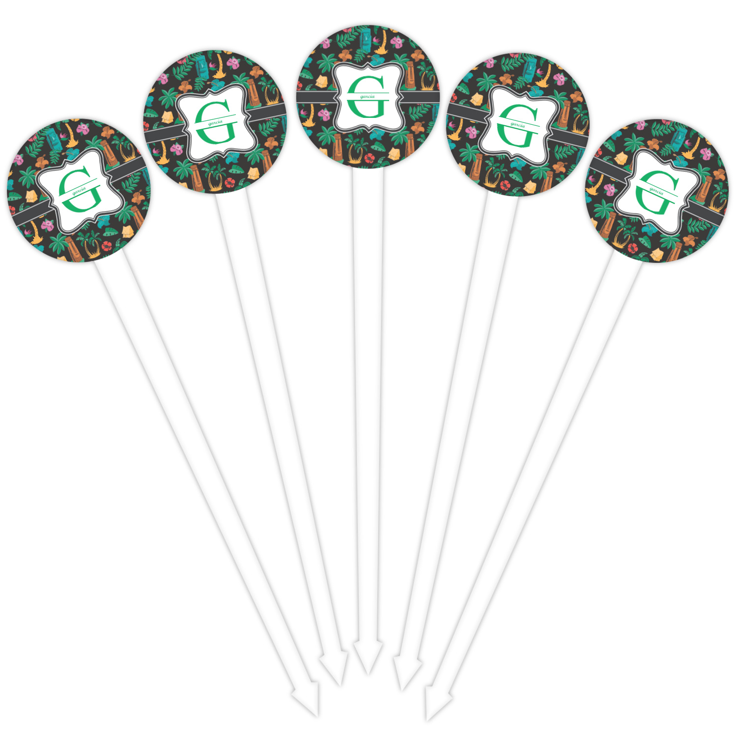 Our plastic cocktail picks have a round disc on top that is printed in full color with your event theme, colors, your logo, your photo, names, initials, monograms etc.