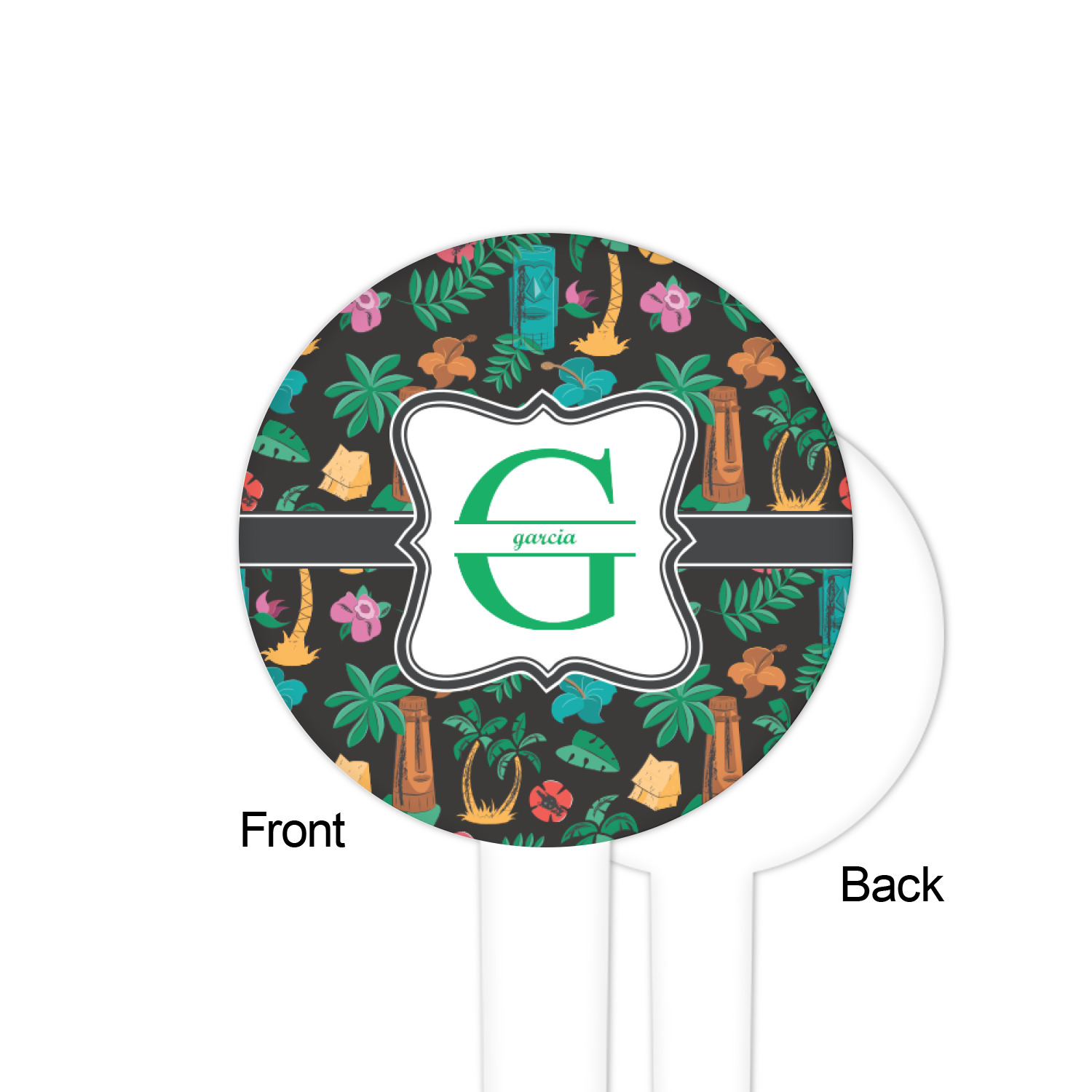 Palm Trees Designs for 4" Round Plastic Food Picks - White - Single-Sided