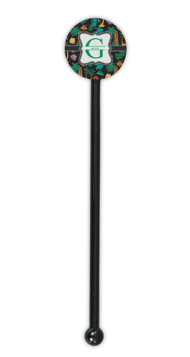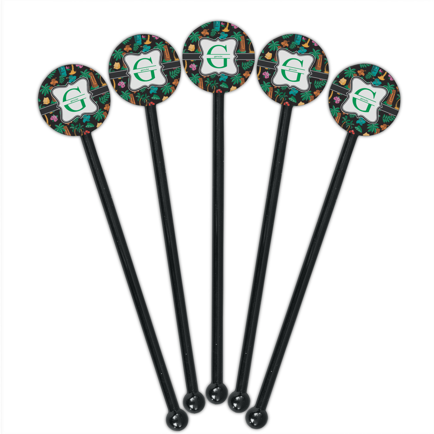 Palm Trees Designs for 5.5" Round Plastic Stir Sticks - Black - Single-Sided