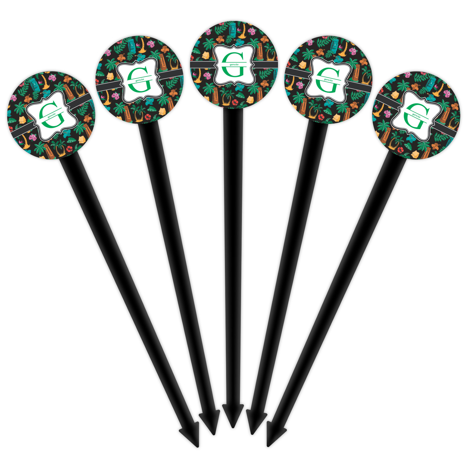 Our plastic cocktail picks have a round disc on top that is printed in full color with your event theme, colors, your logo, your photo, names, initials, monograms etc.