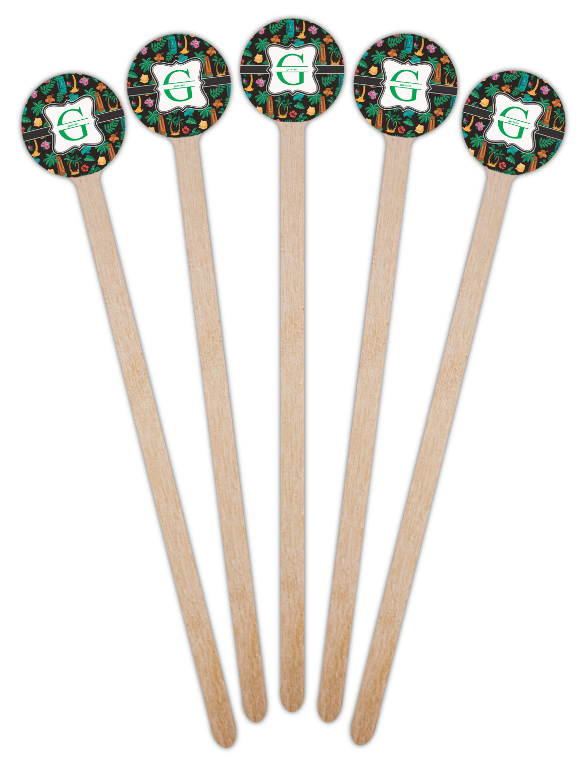 Palm Trees Designs for 7.5" Round Wooden Stir Sticks - Single-Sided