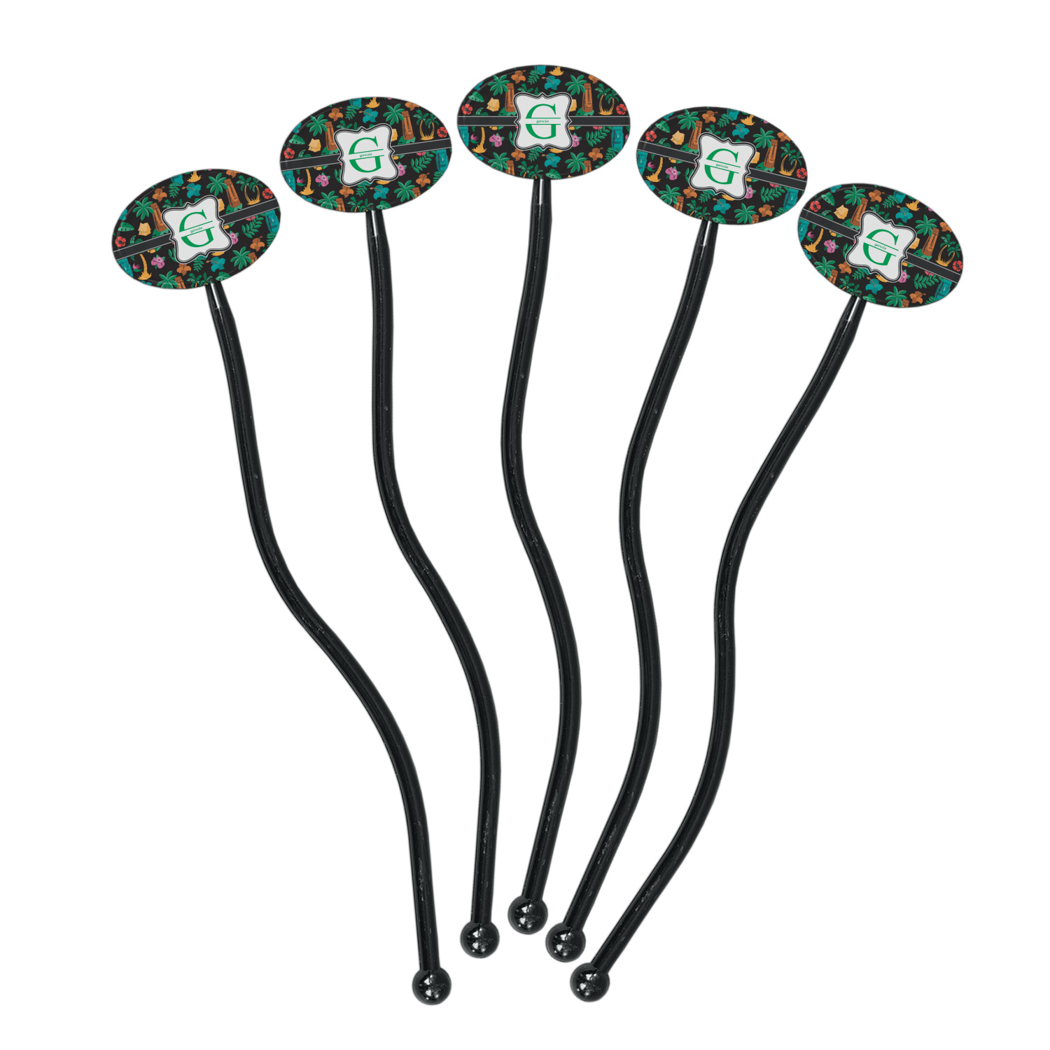 Palm Trees Designs for 7" Oval Plastic Stir Sticks - Black - Double-Sided