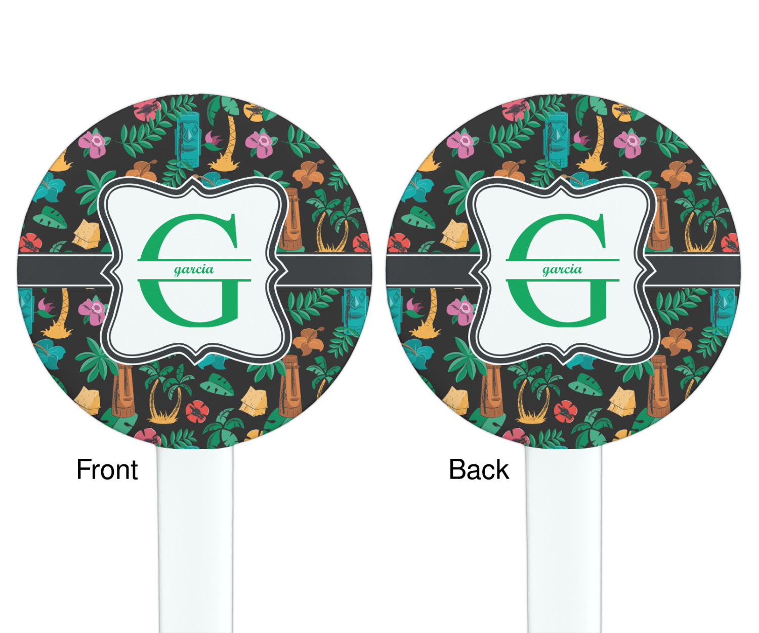 Palm Trees Designs for 7" Round Plastic Stir Sticks - White - Double-Sided