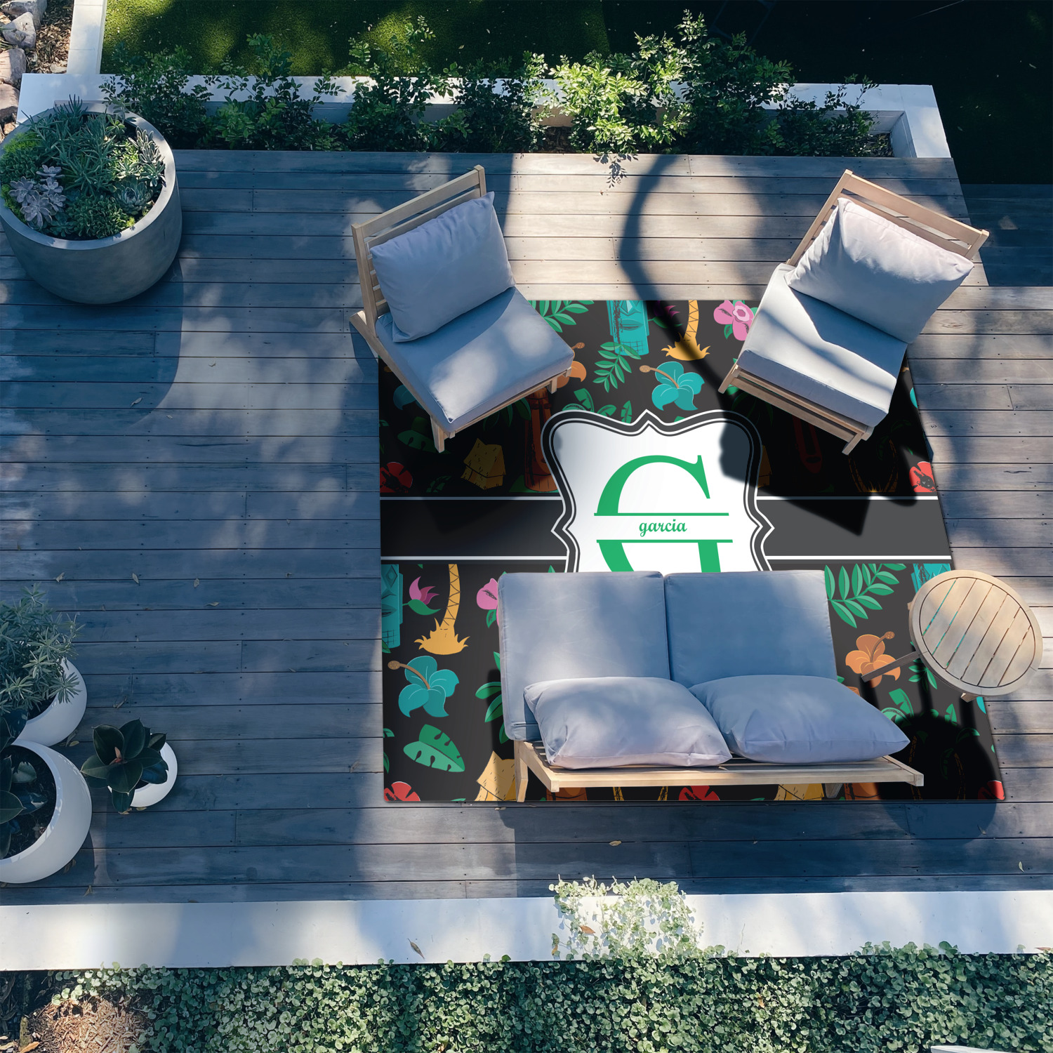 Patio rugs add color and warmth to your home's outdoor space, so create a custom patio rug to suit your personal style and match it to the colors of your outdoor décor. Have it personalized with a monogram, initial, name or a combination of these - the choice is yours.