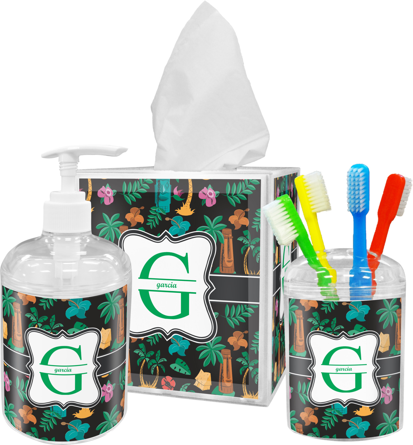 We also have coordinating bathroom accessories like personalized soap dispensers and personalized tissue box covers. Pair them together to create a bathroom accessory set!!