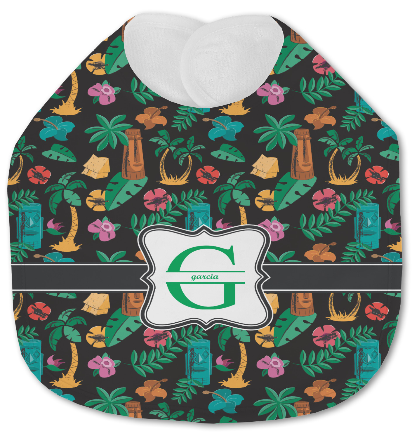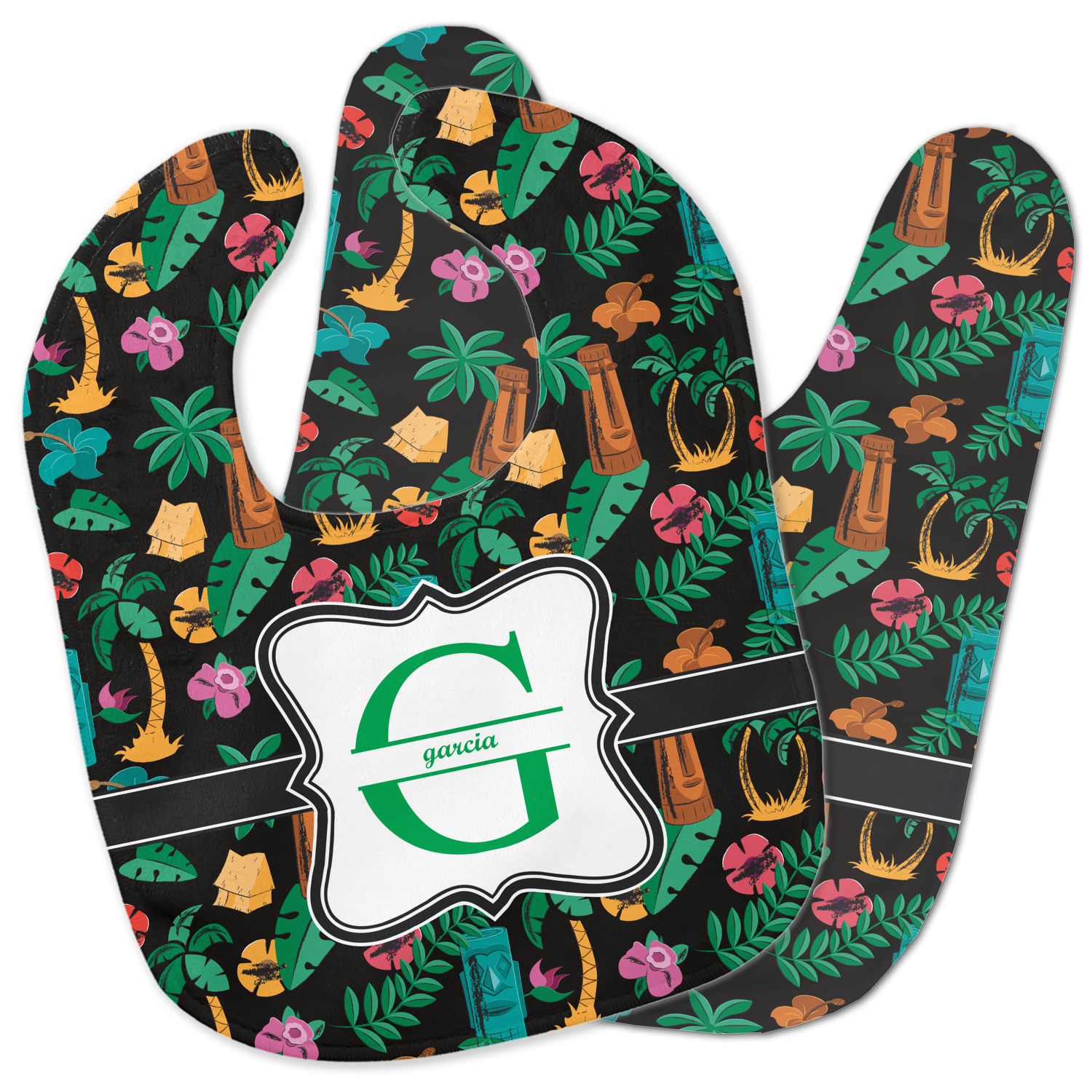 Made of soft polyester, each customizable bib hugs comfortably around the neck to catch every drip and drool. Each bib design is printed with baby-safe ink and finished with a secure stitch pattern and velcro clasp. We carry two customizable bib styles -Microfiber Velour and Jersey Knit.