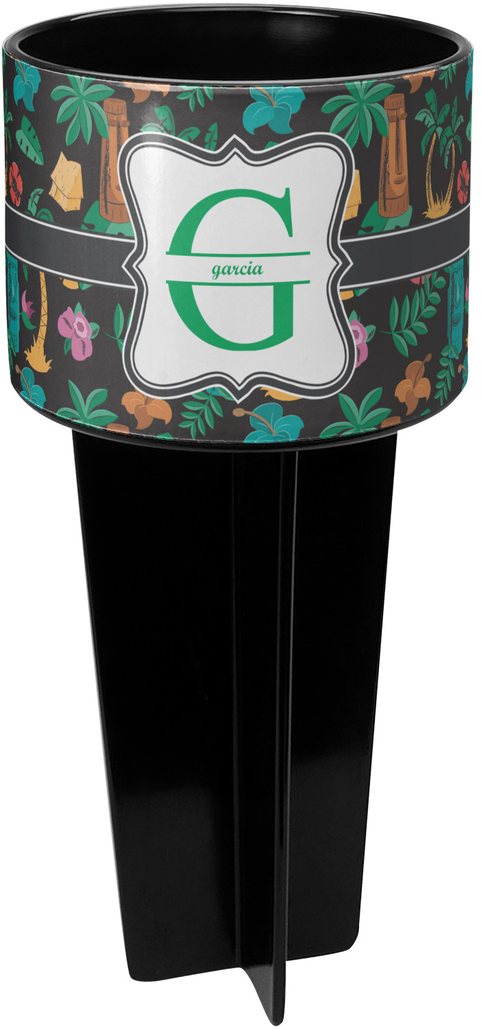 This cup holder has a large stake at its bottom that anchors it to the sand or ground below, while the cup holder rests above the stake. The entire drink holder is made of durable plastic and displays your customization around the cup holder portion. We sell these personalized beach spikers in two different colors: black and white.