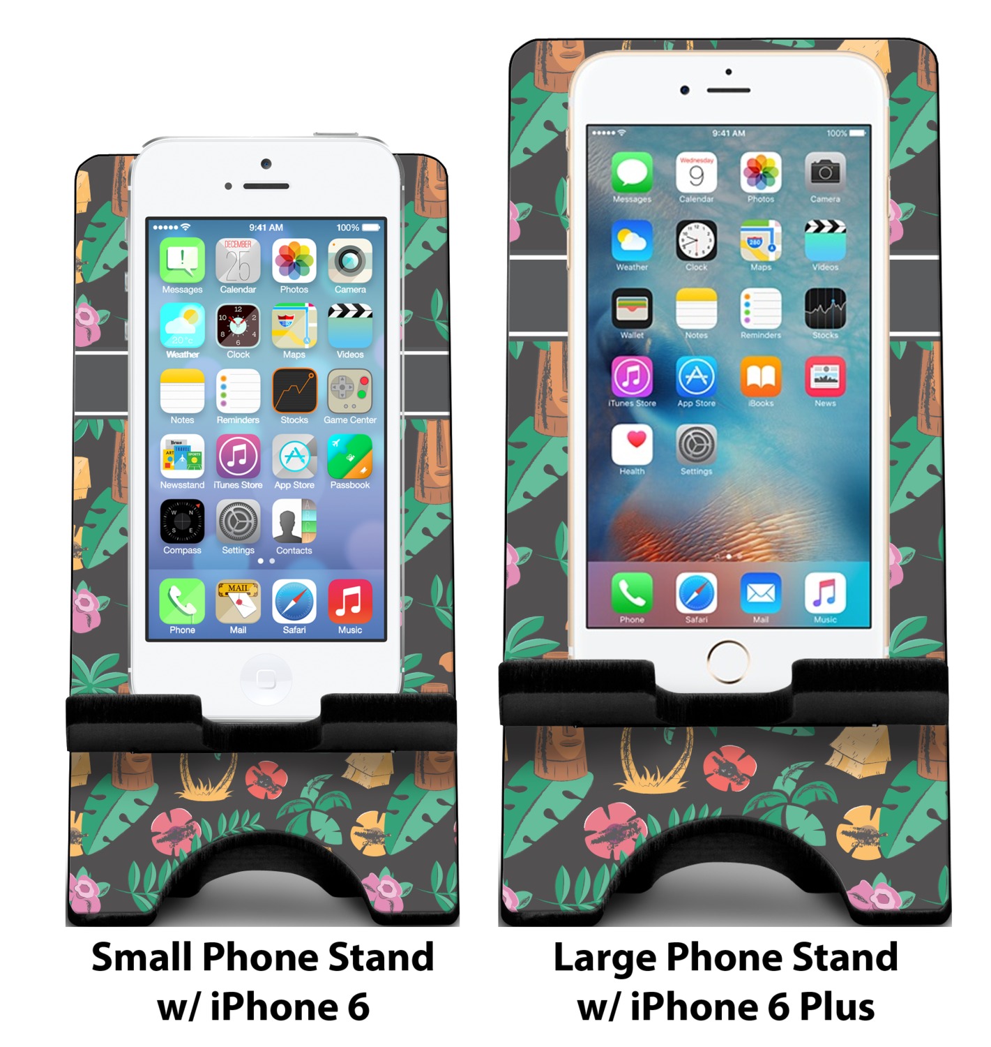 To meet your needs, we offer four variations of this IPhone stand. The backboard of the first version is shaped as a plain, yet sleek rectangle, and is available in two sizes. Our smaller size is approximately 4 by 3.25 by 7 inches, while the larger model is 4 by 3.77 by 8.5 inches. Alongside this model, we also provide you with a more decorative option. The upper part of our second version features a curved edge, for a classy, suave appearance. This phone holder is also sold in two sizes: a smaller version, which is 4 by 3.25 by 7 inches, and our larger model, which is 4 by 3.77 by 8.5 inches. Both models will support large phones, but the larger model is better if you wish to proudly display your personalized design.