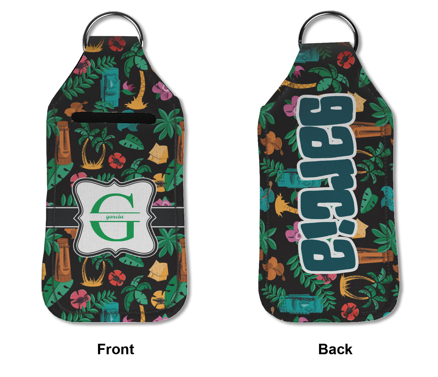 Each hand sanitizer holder comes with its own empty travel-sized, refillable hand sanitizer sure to fit snug in your customized sanitizer case! Our hand sanitizer cases are a durable, yet soft neoprene material sure to last any daily activities or travel agenda. Customize and personalize a hand sanitizer bottle holder with one of our two sizes - small (4.25" x 2.25") or large (5.5" x 2.5"). Each travel sanitizer holder comes with a keyring for attachment on bags, keys, or more!