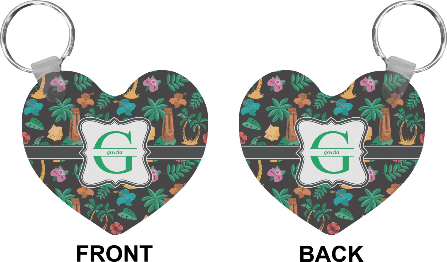Our personalized keychains attach to the included metal, split key ring with a plastic, removable snap. Since a metal ring is included with your purchase, you have the liberty to keep your keys together on the ring, with or without your unique keychain. We offer this keychain in three different shapes: circle, heart, or diamond. We print your personalized design(s) on both sides of the key chain, and the surface has a glossy, reflective finish that only emphasizes your design. Each keychain is approximately 2.25 by 2.25 inches.