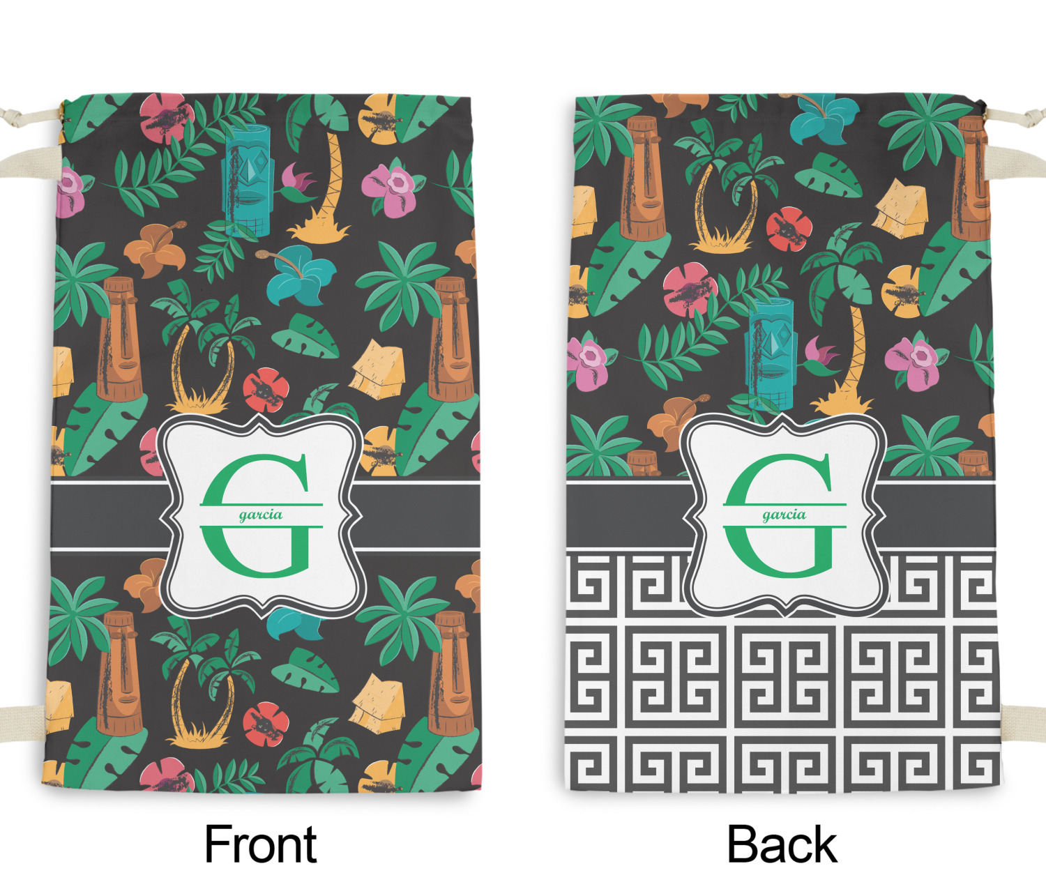 Carry your laundry in style with these customized laundry bags. Available in two sizes, featuring a natural colored woven strap and a cinch cord, these bags hold a lot of clothes or anything else you want to fit in them.