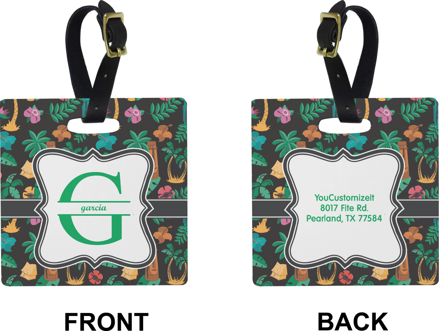 These cute luggage tags are made of a fiber-reinforced, UV-resistant plastic, making them waterproof and durable enough for both everyday use and the rugged adventures of any traveler! A leather strap with holes and a buckle is included with your purchase and can be used to attach your custom luggage tag to any suitcase, backpack, or duffel bag. You can design these travel tags as you wish; your customization will be displayed across the front, while the back will show as little or as much personal information as you want.