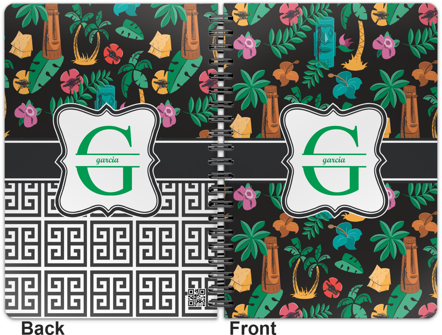 This spiral notebook includes 75 sheets of thick, ruled paper. The front and back of this custom notebook is made of a robust, laminate, plastic covering. We print your personalization on these two panels, underneath a glossy finish, which emphasizes the colors of your design. The two panels and the sheets of paper are held together by a sturdy, black coil. The paper within your bound notebook is perforated for easy, clean tearing.