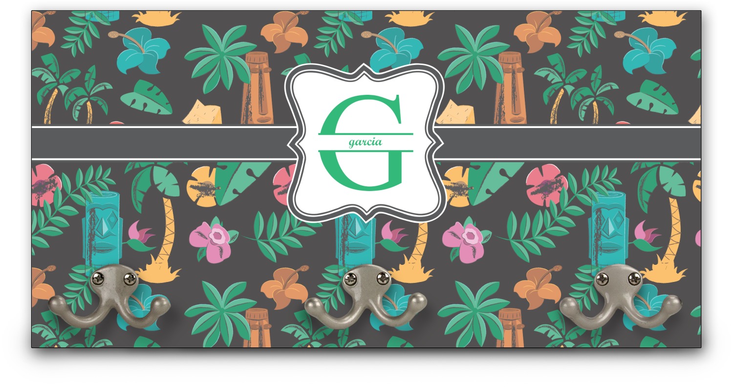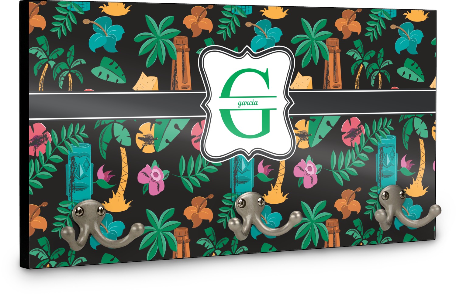 This coat rack is the perfect way to add some personality to your wall or entryway. The board is made of a strong maple that is approximately 16" x 8". The three 2-prong hooks are a sturdy metal that have three screws attaching them to the board. Your design is printed right onto the front of the board while the back and sides are a simple black.