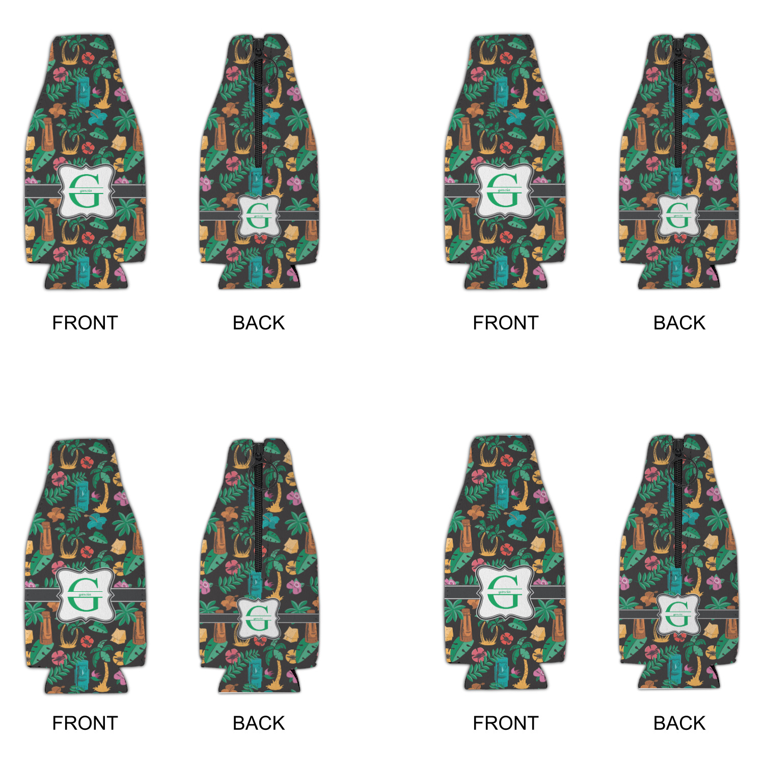 Palm Trees Designs for Zipper Bottle Coolers - Set of 4